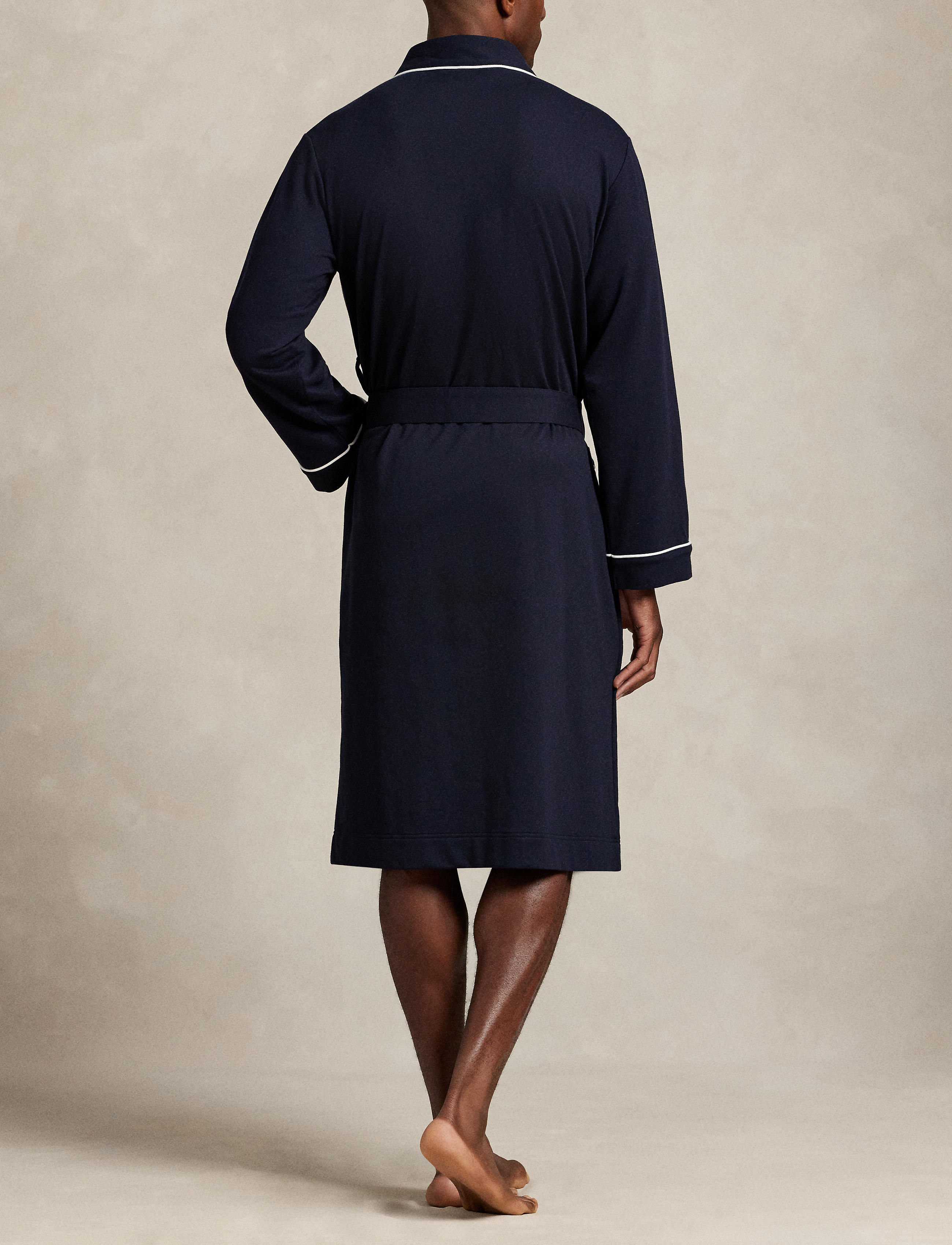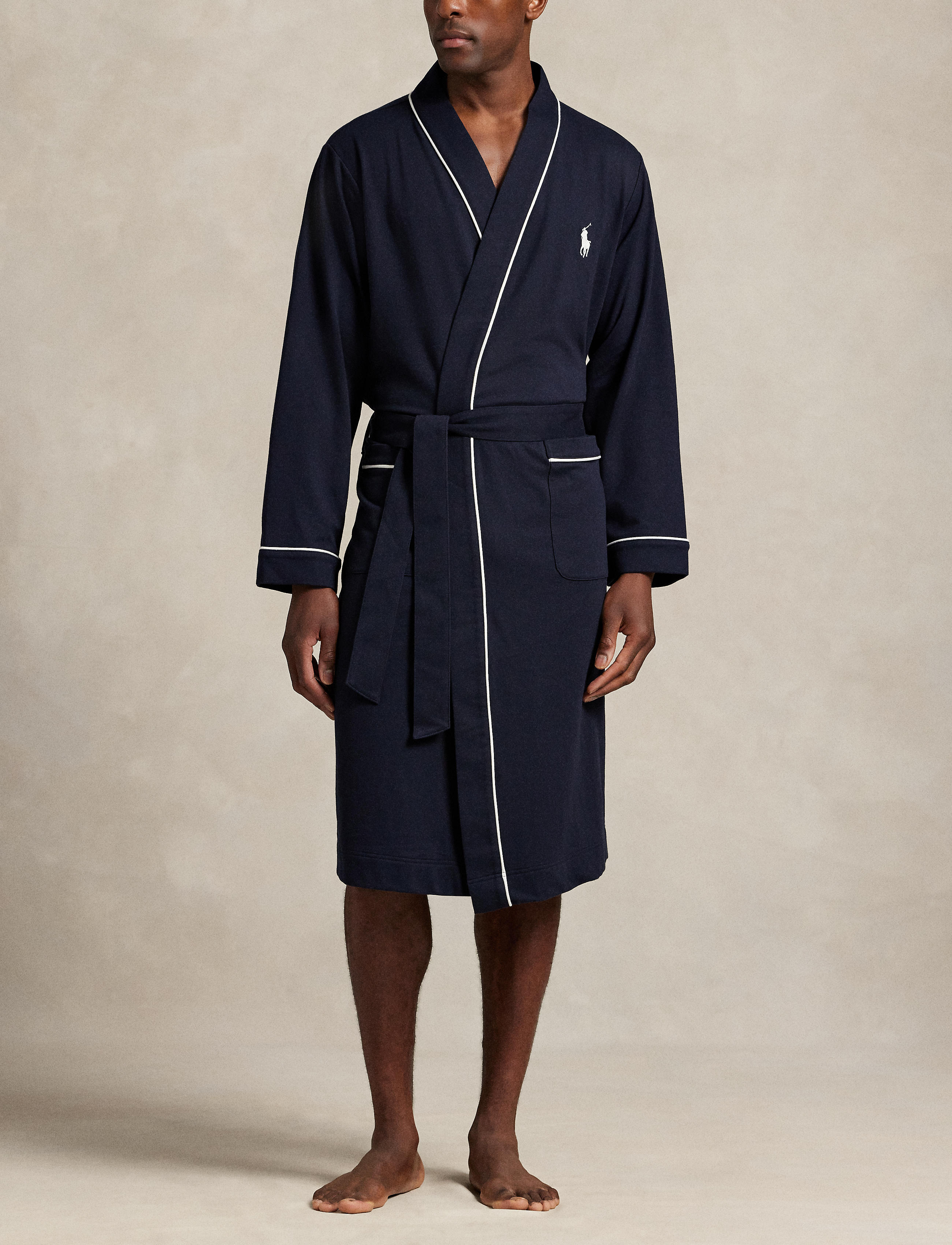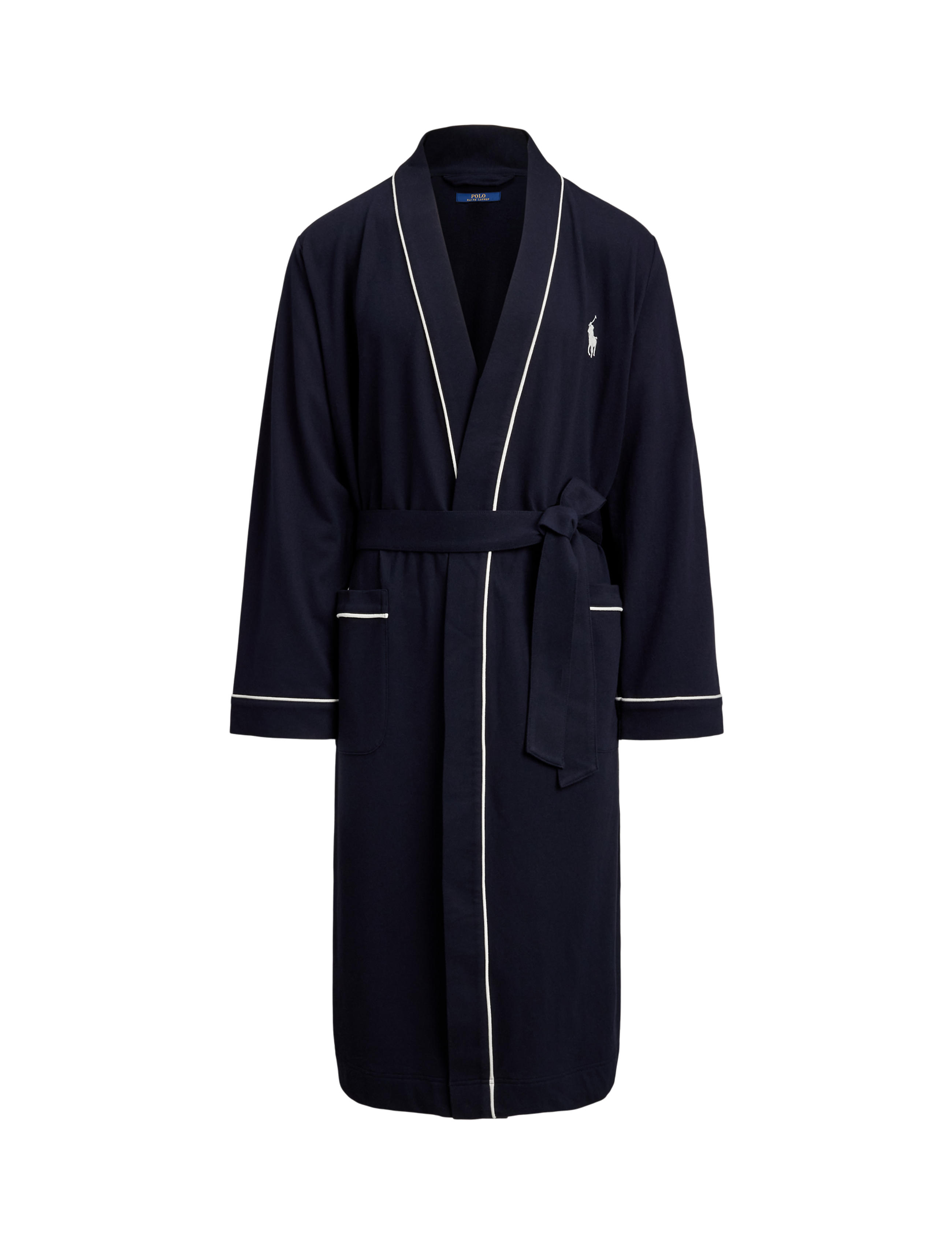 Crafted with soft cotton-blend jersey, this lounge-ready robe is detailed with contrast piping and our signature embroidered Pony. Size S/M has a 48" length. Wrap silhouette with self-belt ... Sjá nánar