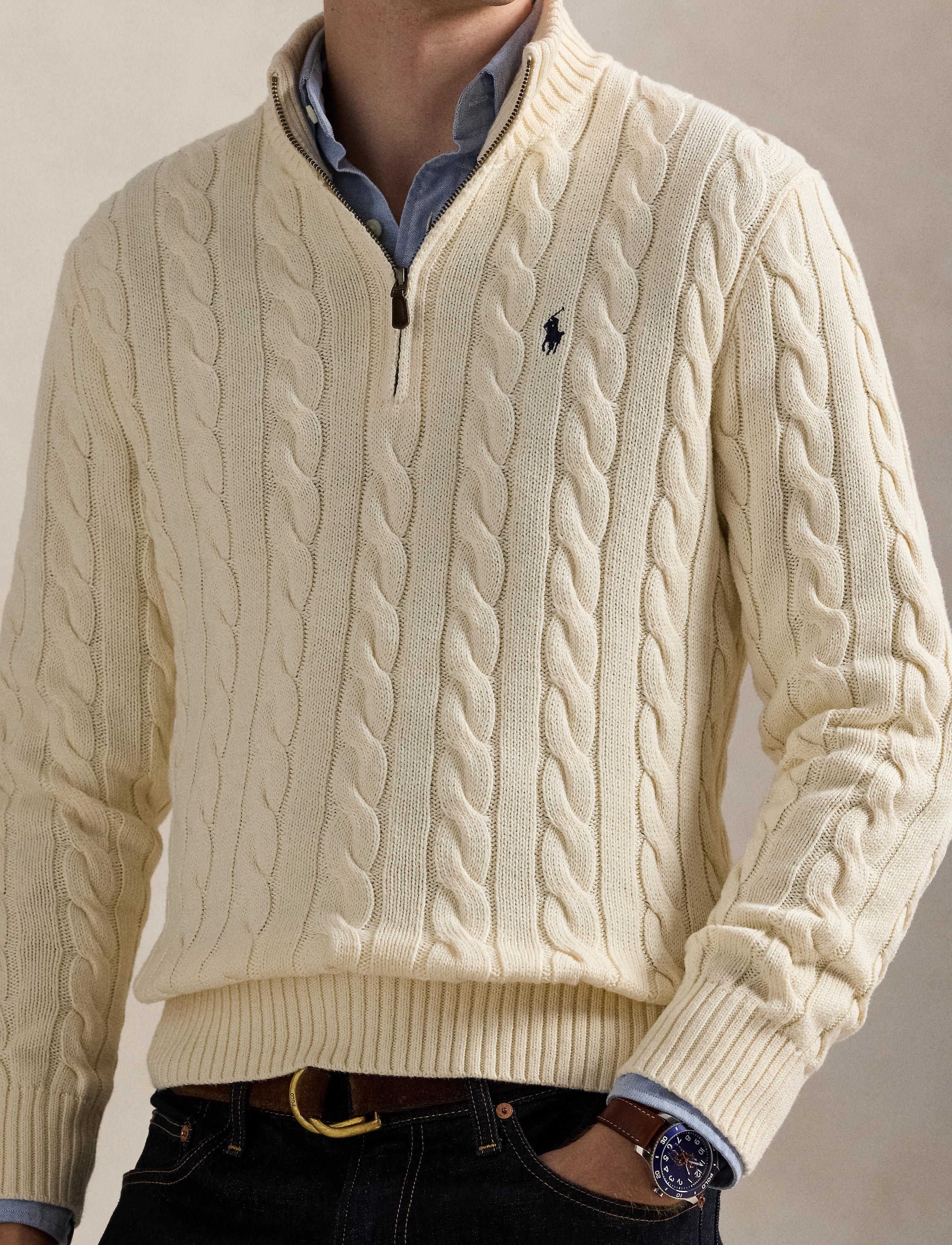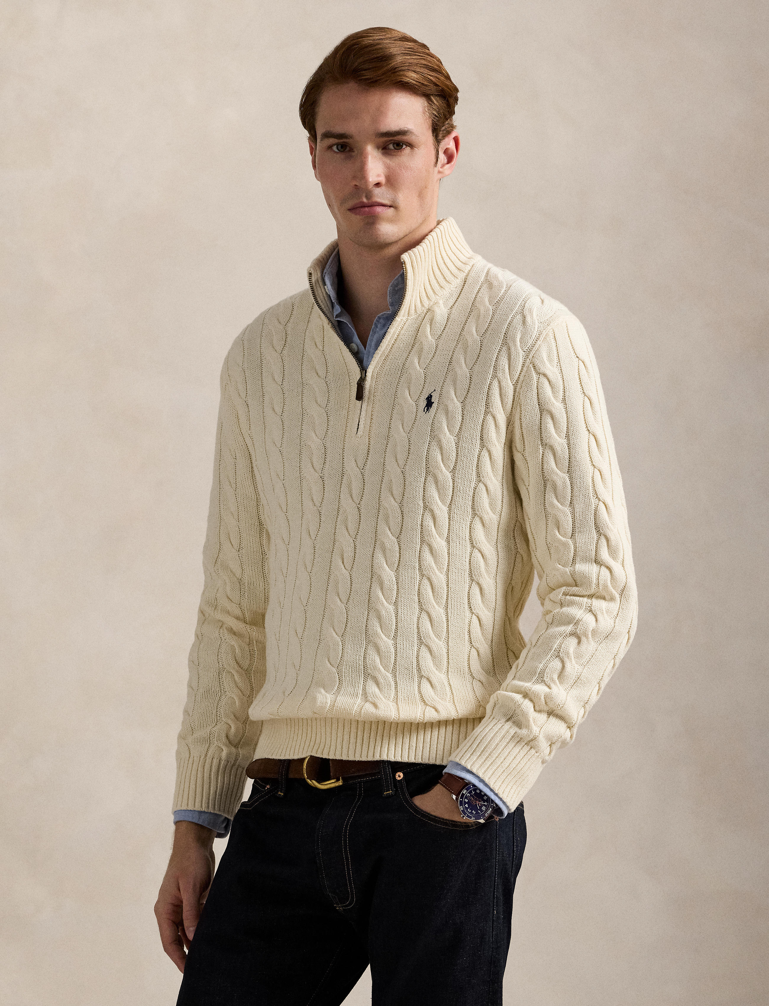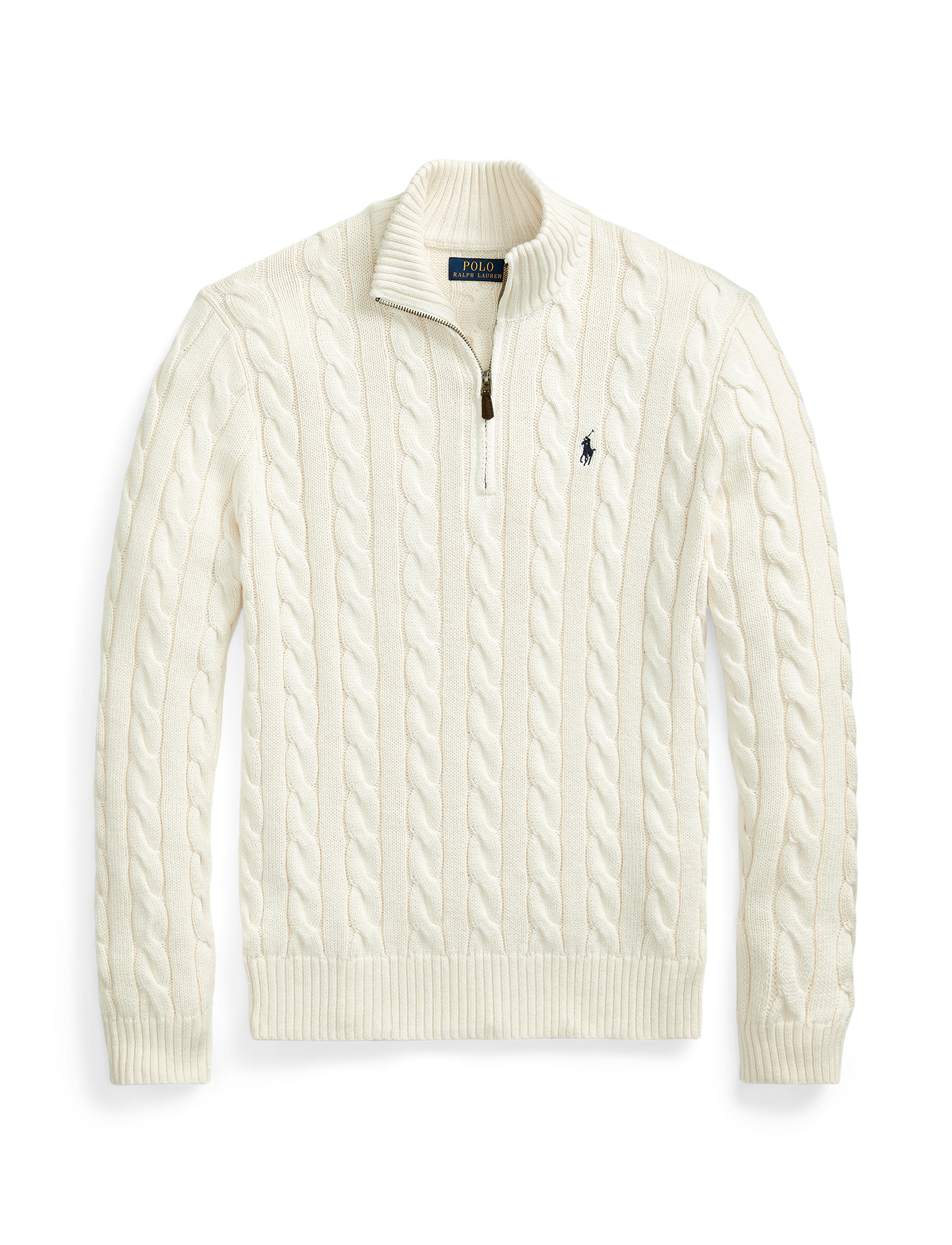 This chunky-knit cotton layer features our iconic cable design and signature embroidered Pony. Regular Fit: wider at the chest while still maintaining a modern silhouette. Size medium has a ... Sjá nánar