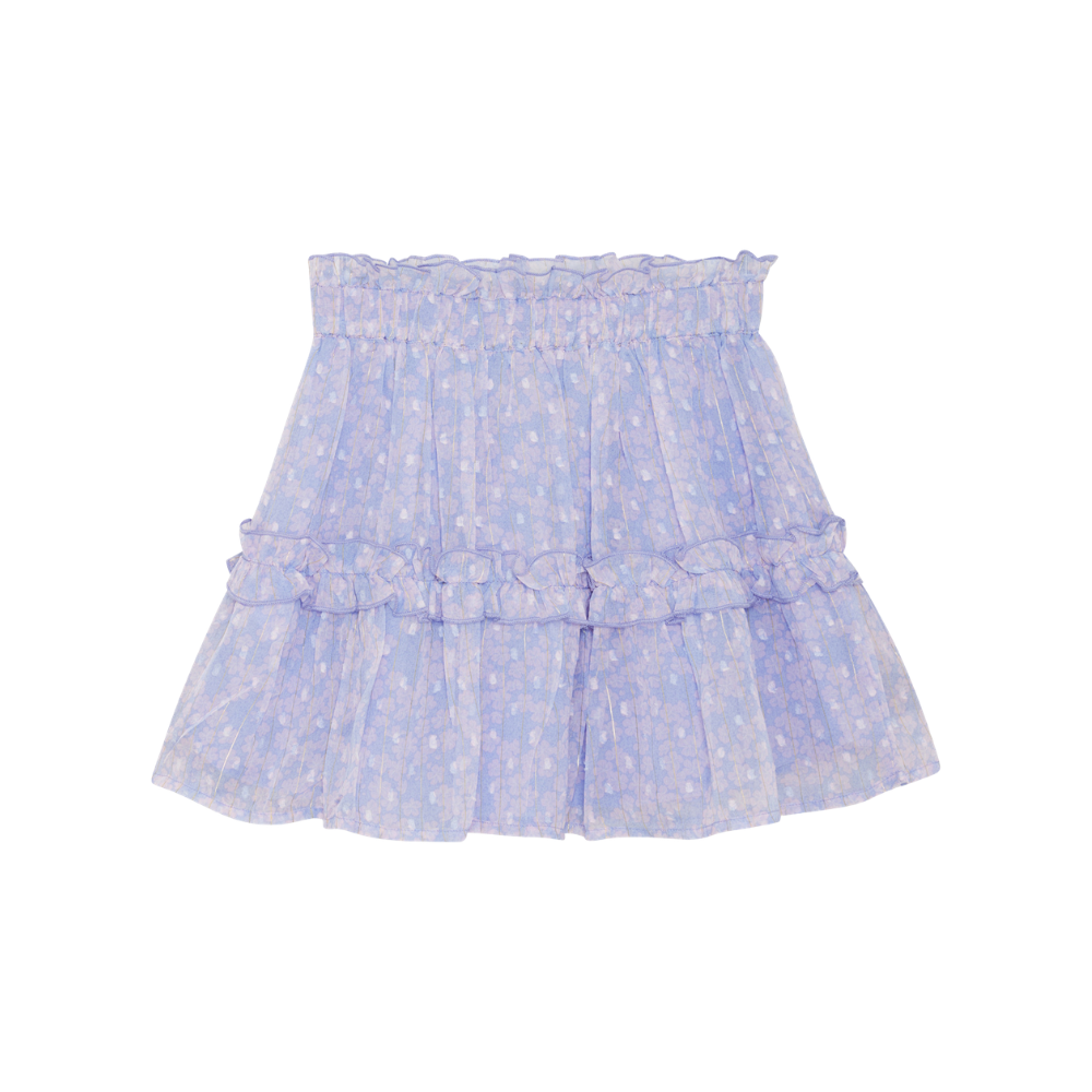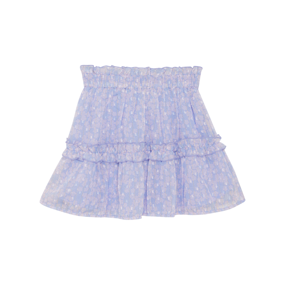 Ljós fjólublátt pils frá Creamie með smáu blómamynstri. 90% polyester og 10% metal fibers.