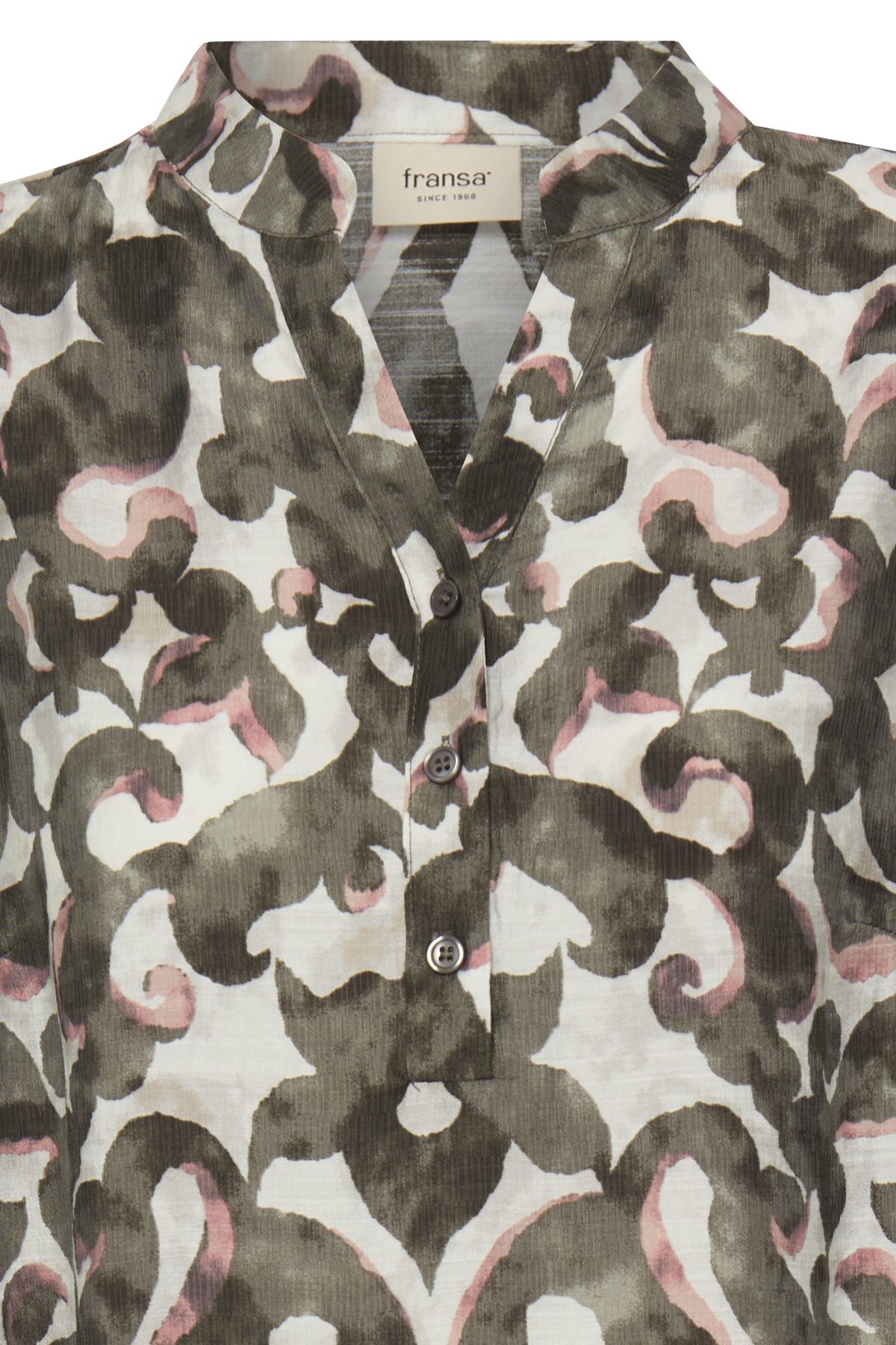 Fallega mynstraður kjóll með vösum frá FRANSA. Stærðirnar eru nokkuð hefðbundnar hjá FRANSA og er mælt með því að rétt stærð sé tekin, ekki minni eða stærri.