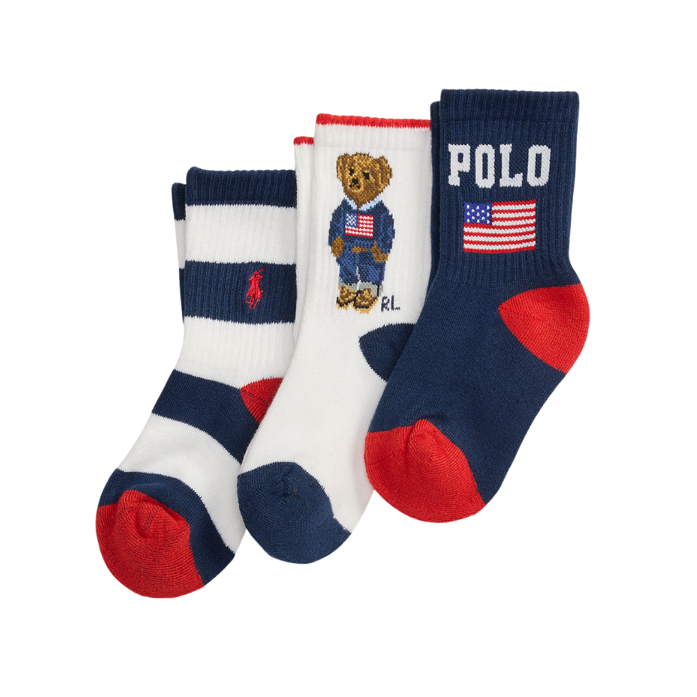Sokkar frá Polo Ralph Lauren. Þrenn pör saman í pakka. 95% polyester og 5% elastane.
