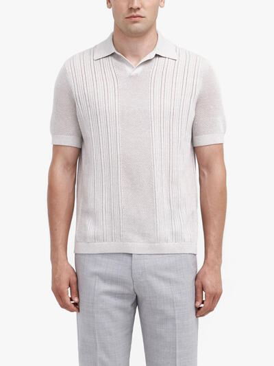 Flottur prjónaður polo bolur frá Tiger of Sweden úr merinoullar- og hörblöndu.