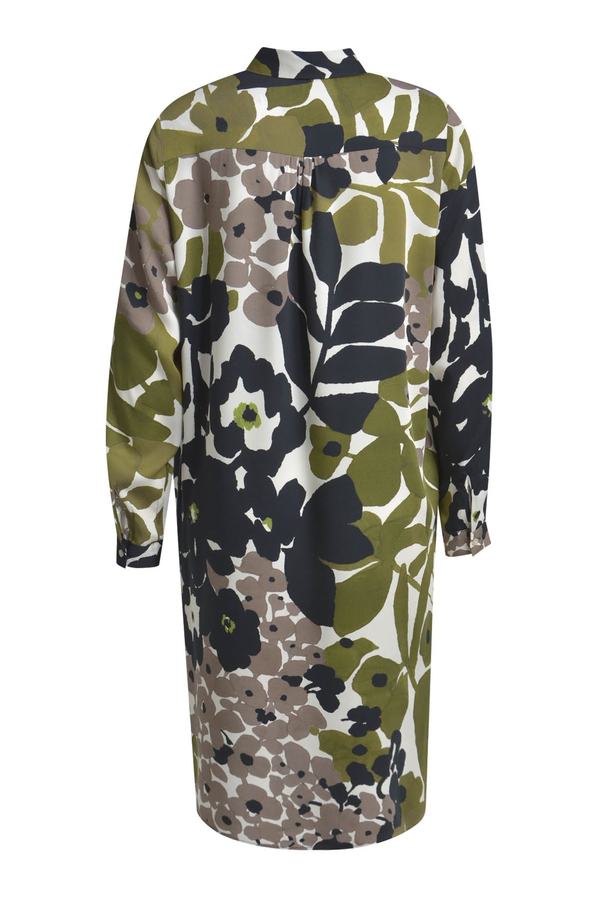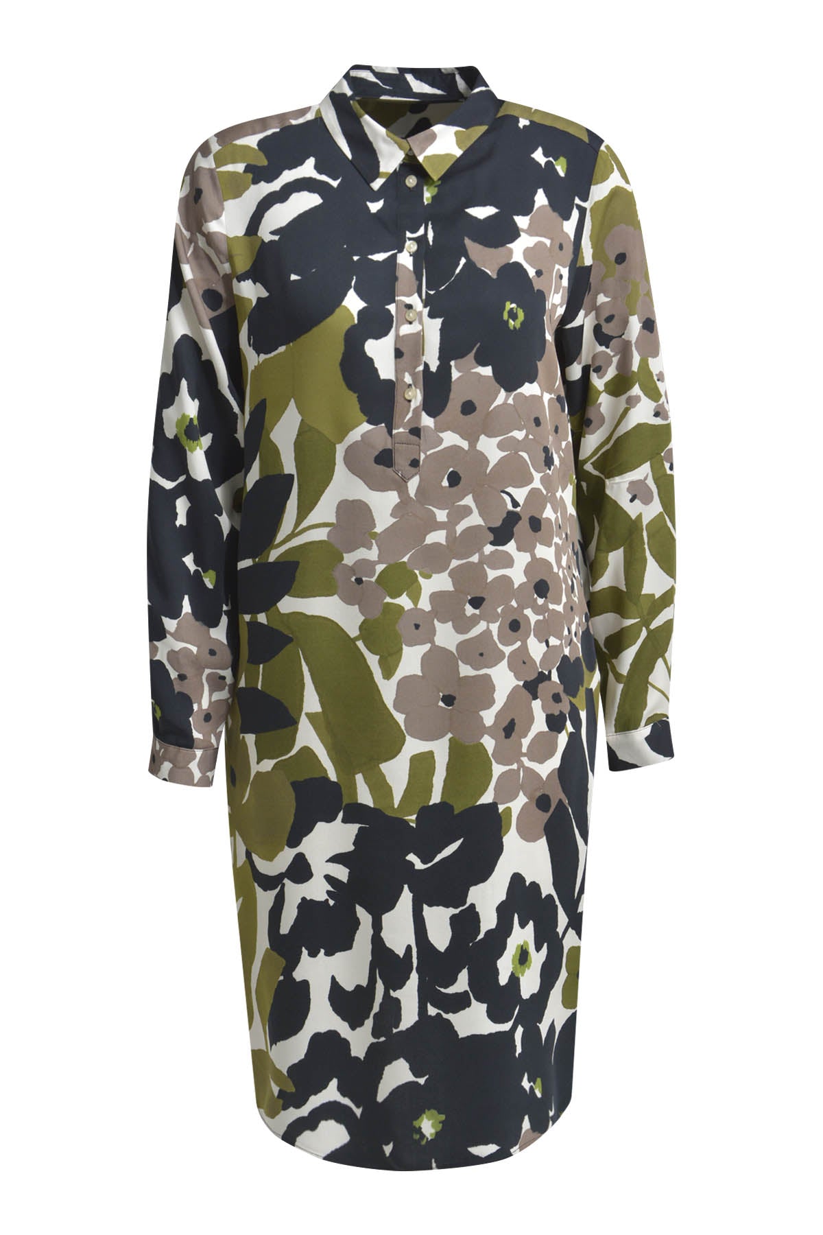 Langerma kjóll með skyrtukraga. Beint snið.  100% Viscose