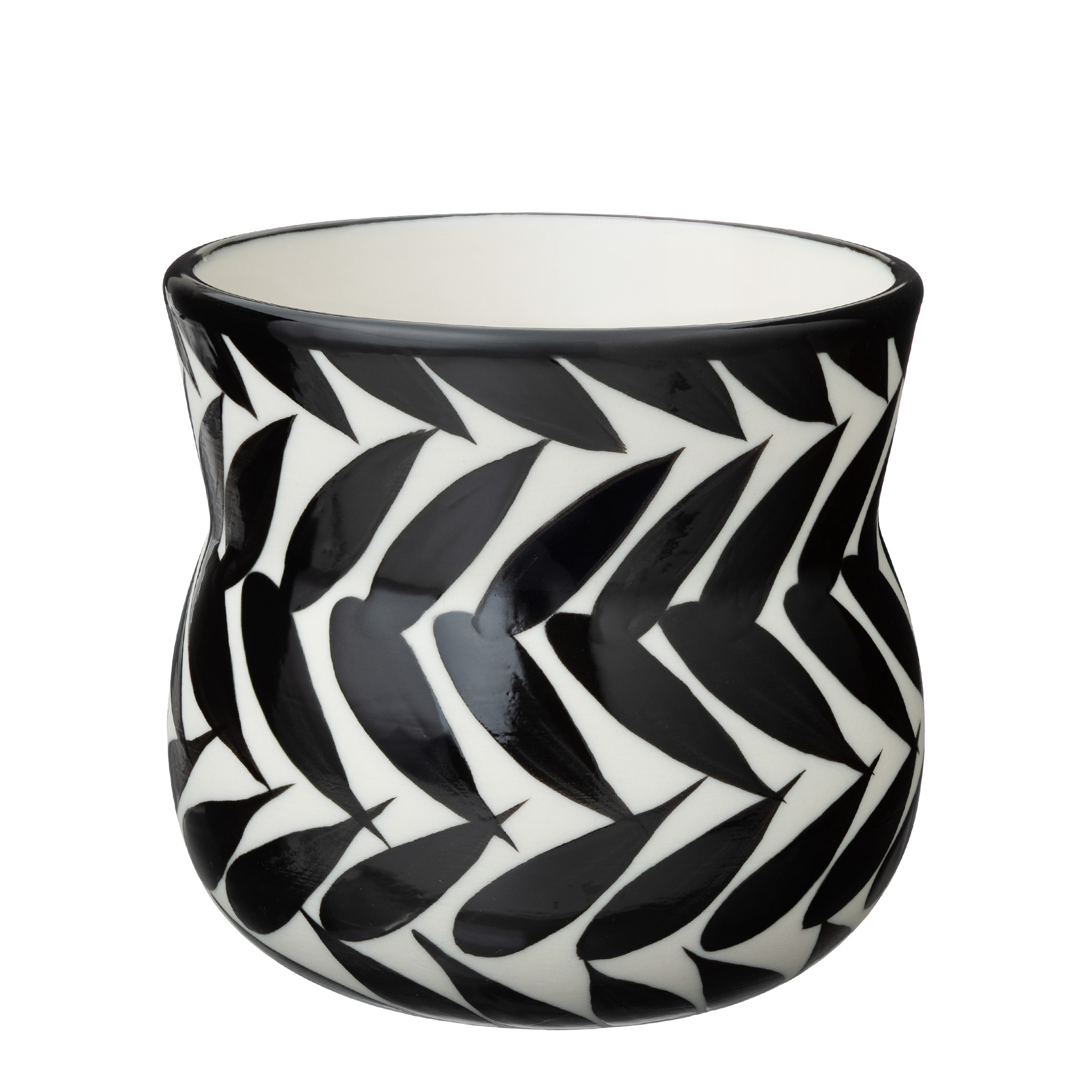 Handgerður svartur Veltibolli úr postulíni, sem þolir vel uppþvottavélar og örbylgjuofna. Bollinn hefur þann eiginleika að hitna ekki efst þegar hellt er í hann allt að 150 millilítrum.