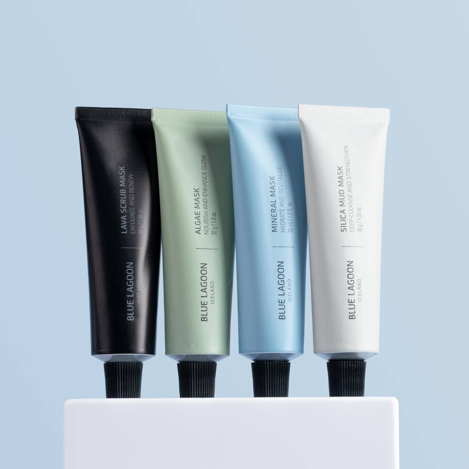 Gjafasett sem inniheldur einstaka lífvirka andlitsmaska Bláa Lónsins í ferðastærð. Settið inniheldur: Silica Mud Mask (30 ml), Algae Mask (30 ml), Mineral Mask (30 ml) og Lava Scrub Mask (30 ml).