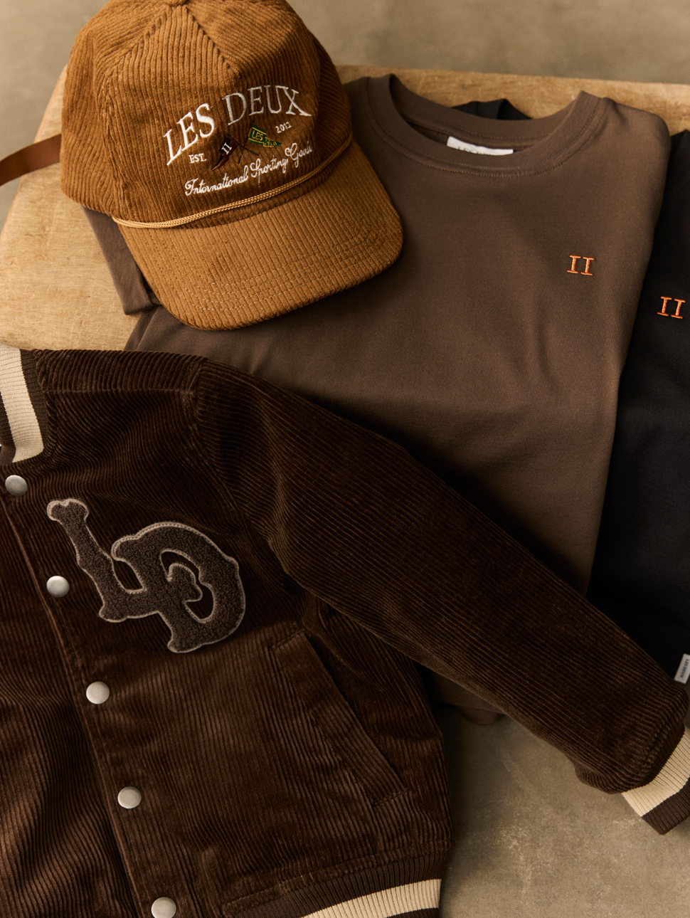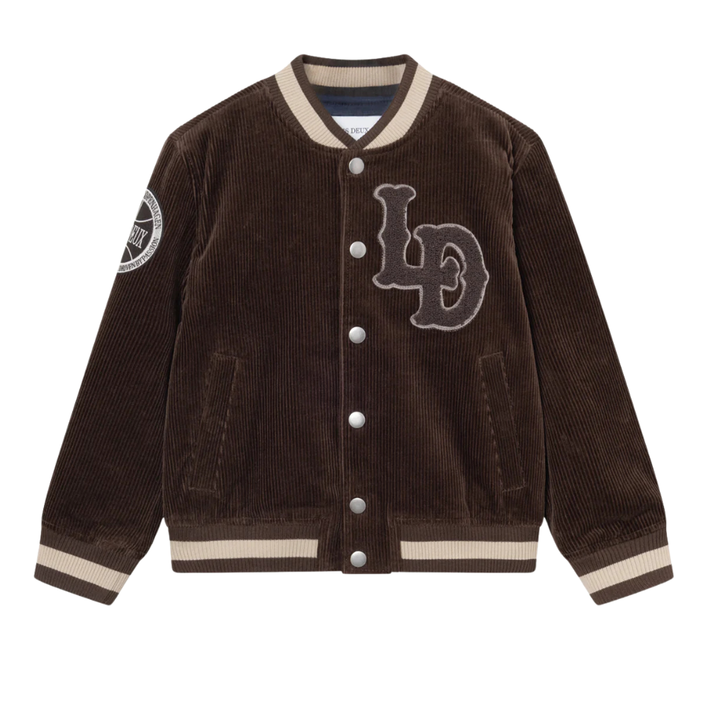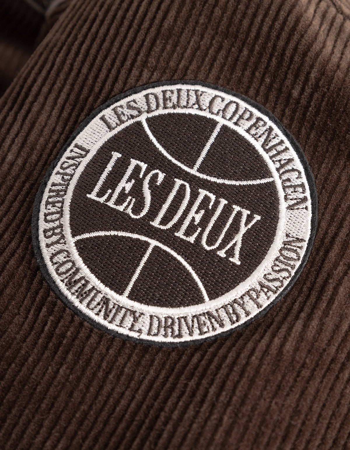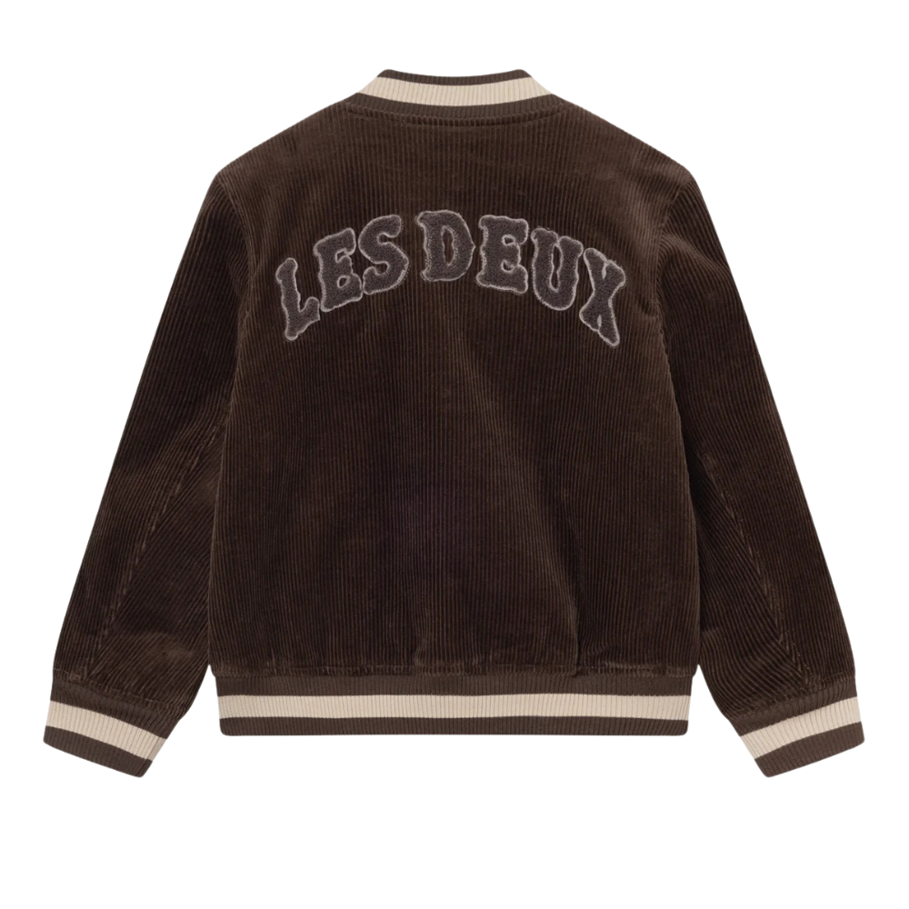Dökk brúnn flauelsjakki frá Les Deux. Jakkinn er smellur og með stroffi við ermar og mitti. 98% bómull og 2% elastane.