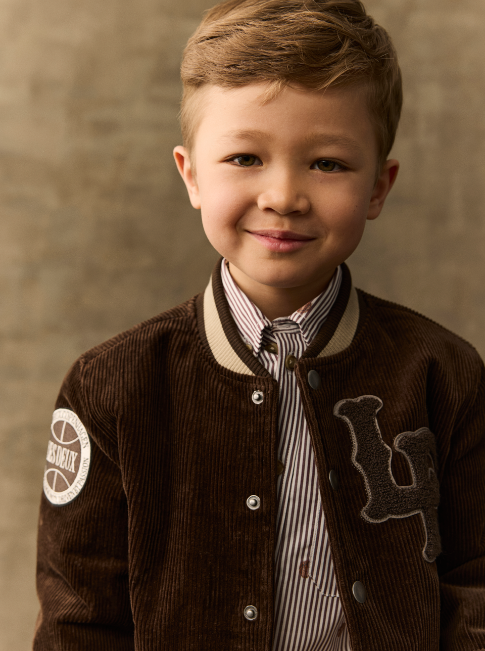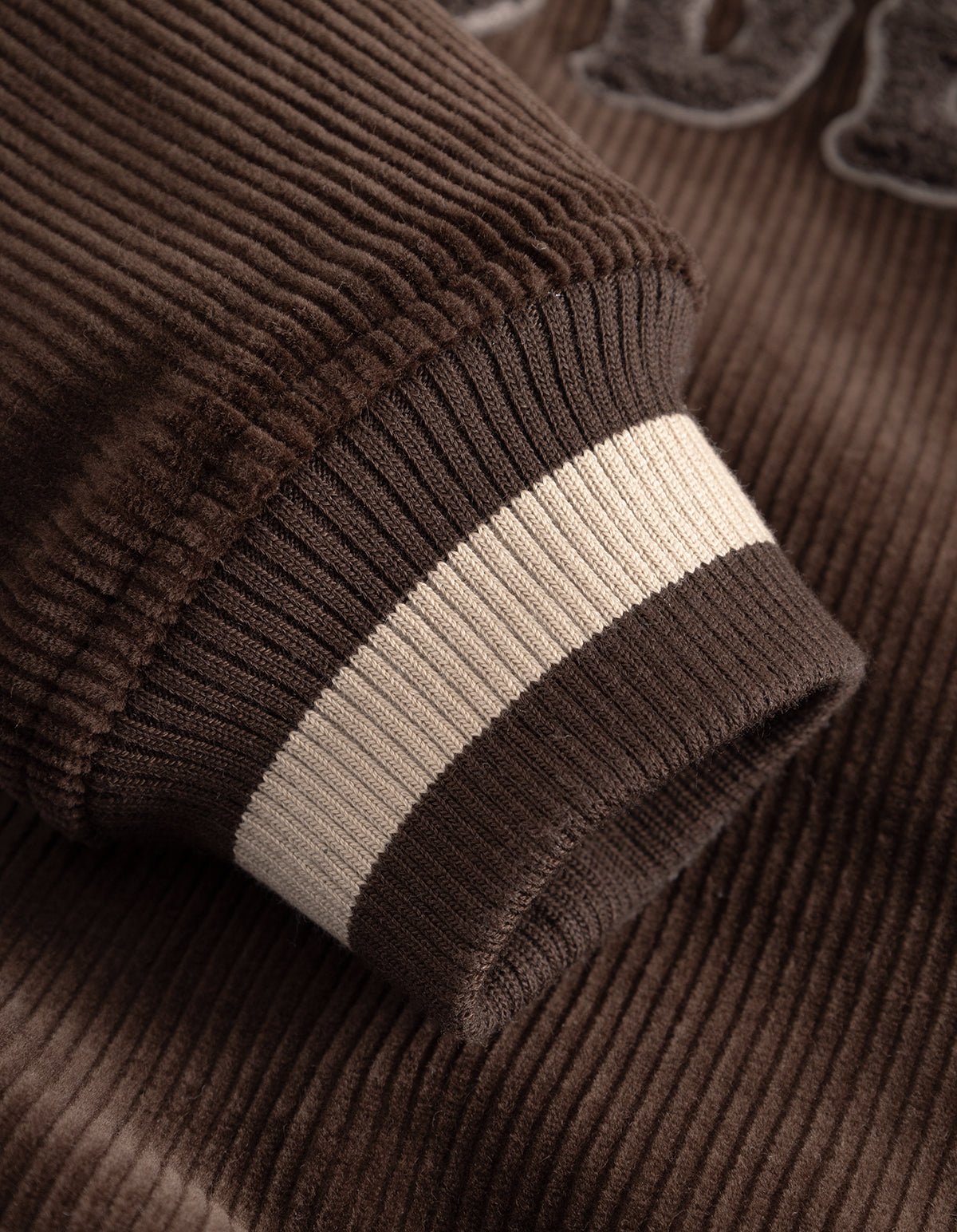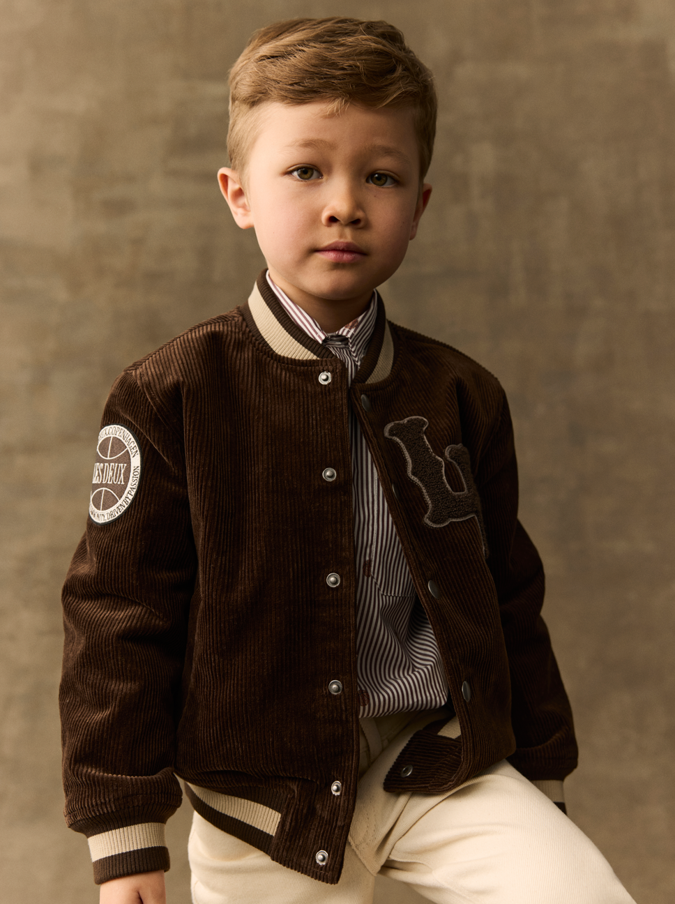 Dökk brúnn flauelsjakki frá Les Deux. Jakkinn er smellur og með stroffi við ermar og mitti. 98% bómull og 2% elastane.