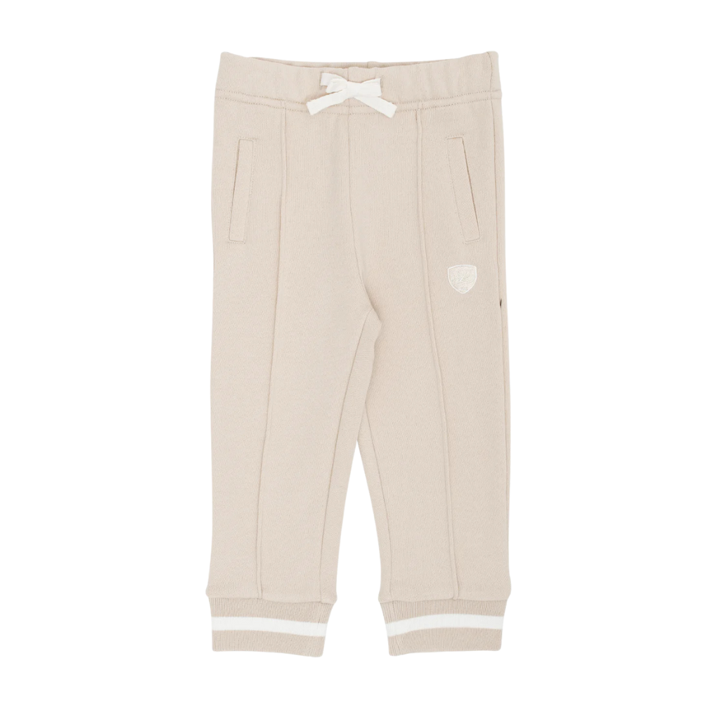 Ljósar buxur frá Livly með stroffi við skálmar. Buxurnar eru bundnar í mittið. 95% bómull og 5% elastane.