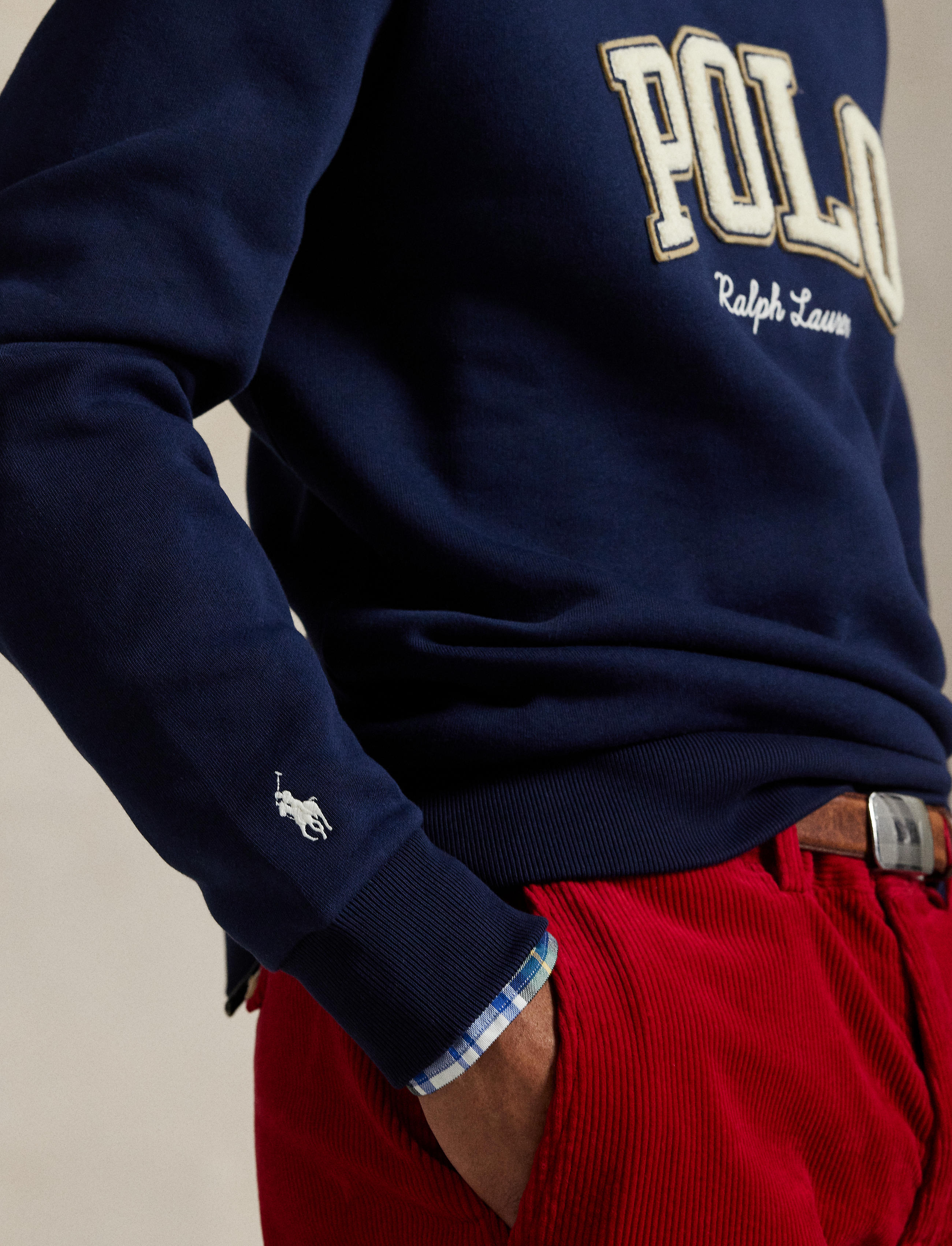 Along with our signature embroidered Pony, this cotton-blend sweatshirt features our Polo logo rendered in letterman-style appliqués. Size medium has a 27.5" body length (front and back), a ... Sjá nánar