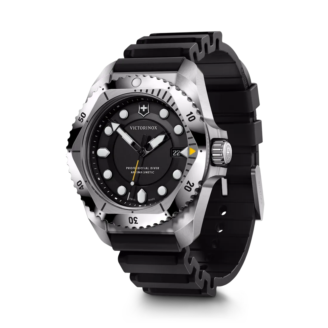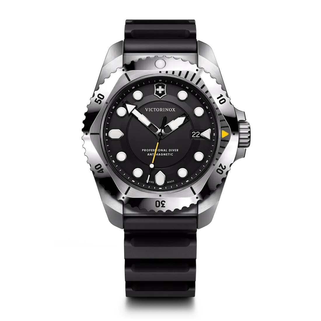 Úrkassi: 43mm – stál Úrverk: Rafhlaða – svissneskt Vatnsvörn: 300M Skífa: Svört – dagsetning – vísar Gler: Safírgler Ól: Gúmmí Ábyrgð: Fimm ára