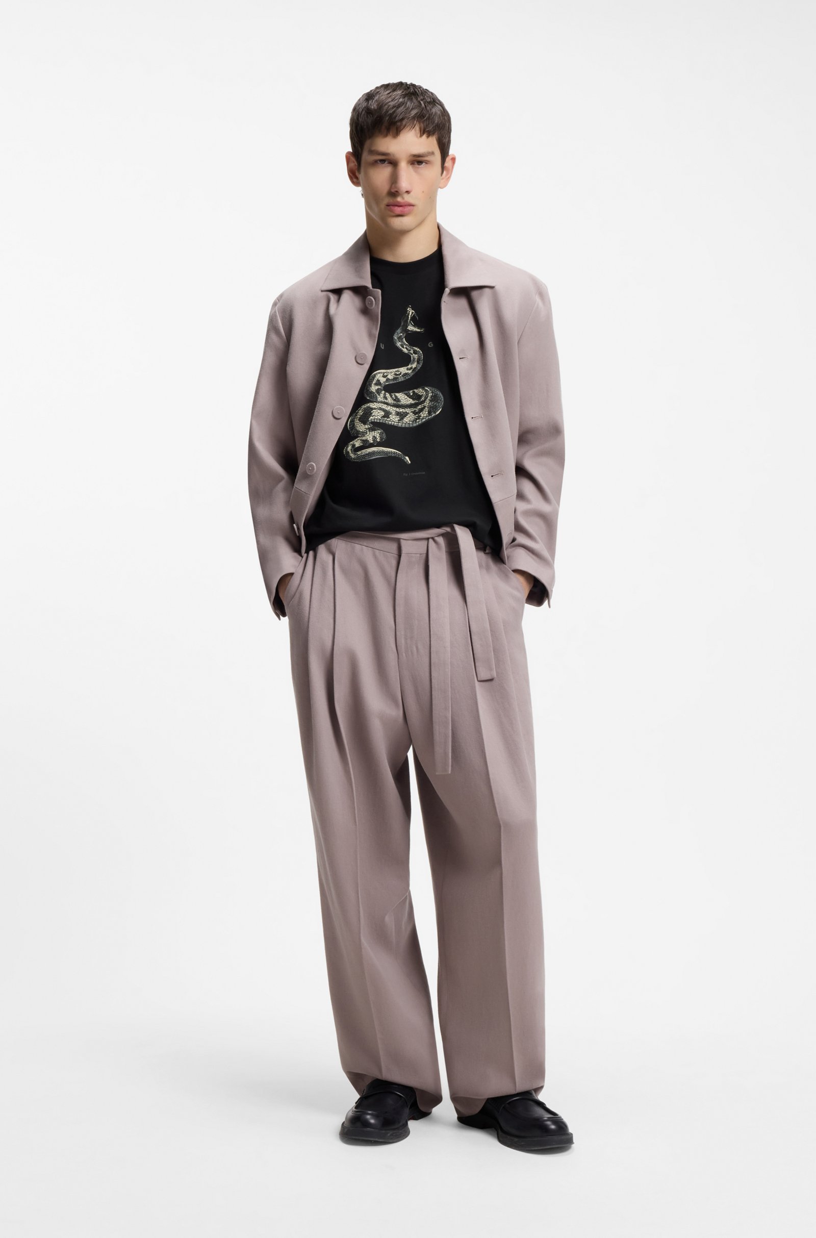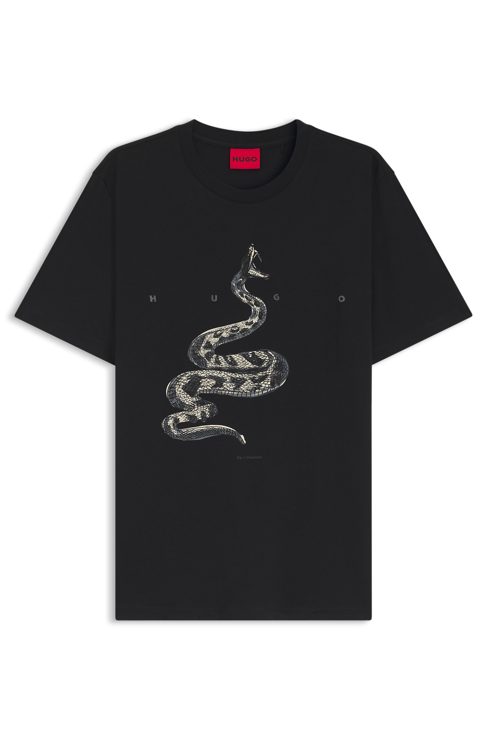 Energise a casual outfit with the spaced-out logo and statement artwork of this regular-fit HUGO Menswear T-shirt. Crafted in breathable cotton. Regular fit Crew neck Short sleeves Standard ... Sjá nánar