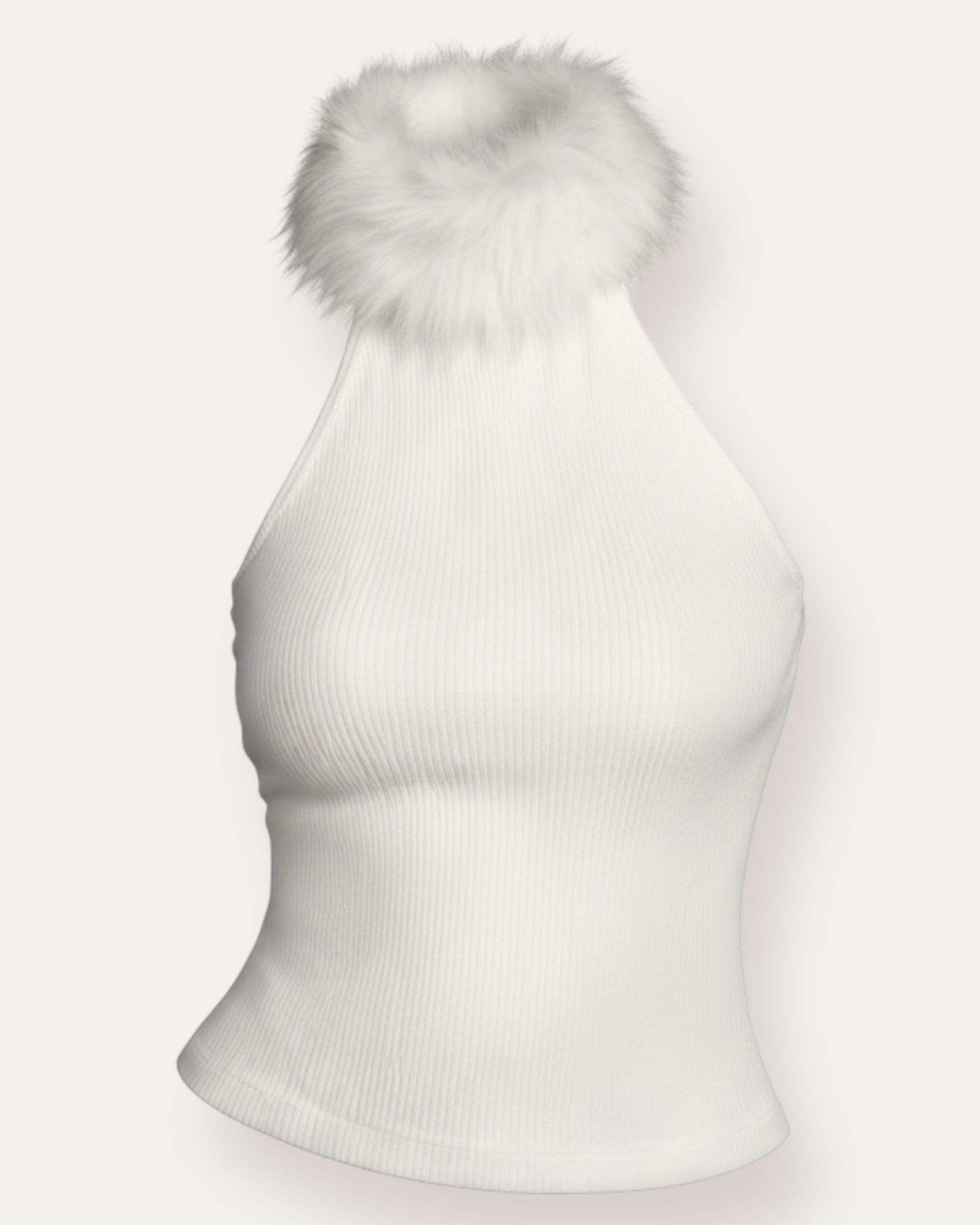 FORPÖNTUN Ribbaður halter toppur með loðpompi Stílhreinn og mjúkur ribbaður toppur með fallegu halter-sniði sem mótar sig fallega að líkamanum. Toppurinn er úr teygjanlegu og þægilegu efni ... Sjá nánar