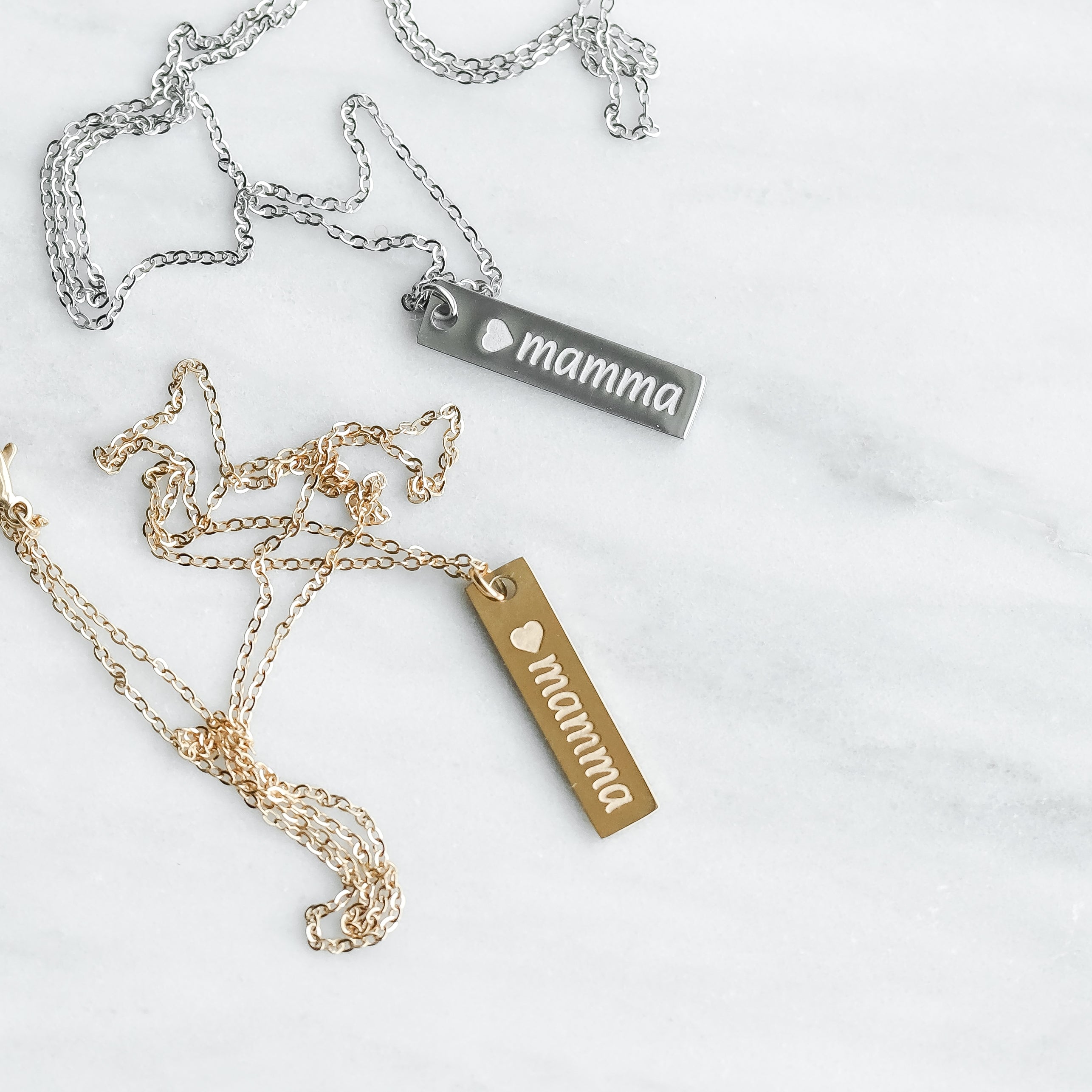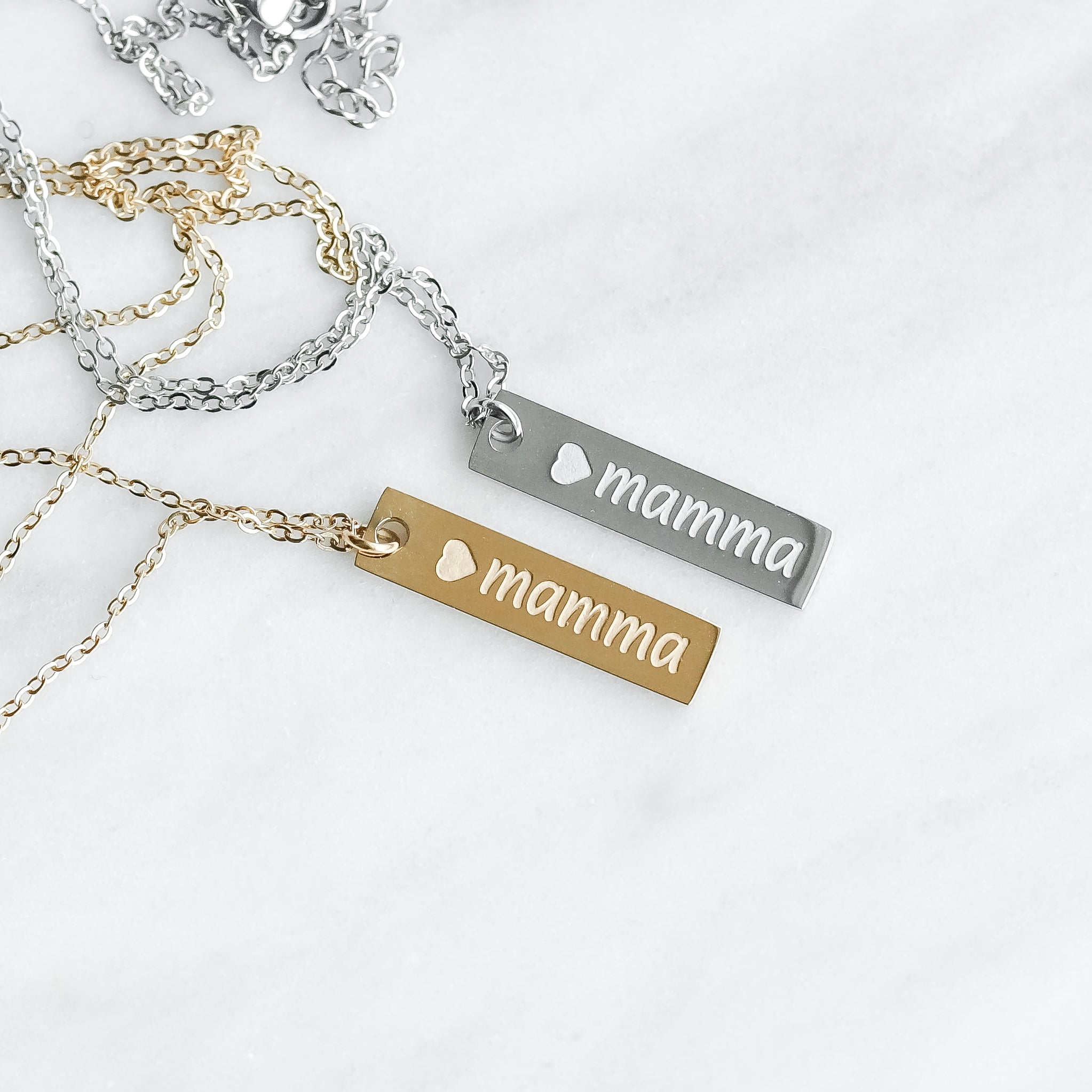 Ryðfrítt stál og gullhúðað stál. Kemur á 50cm keðju með 5cm framlengingu.   English: Stainless steel and gold plated stainless steel. Chain is 50cm with extra 5 cm.