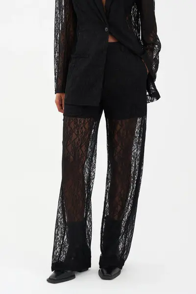 Flottar buxur úr blúnduefni frá IVY Copenhagen. Buxurnar eru með háu mitti og beinum skálmum.