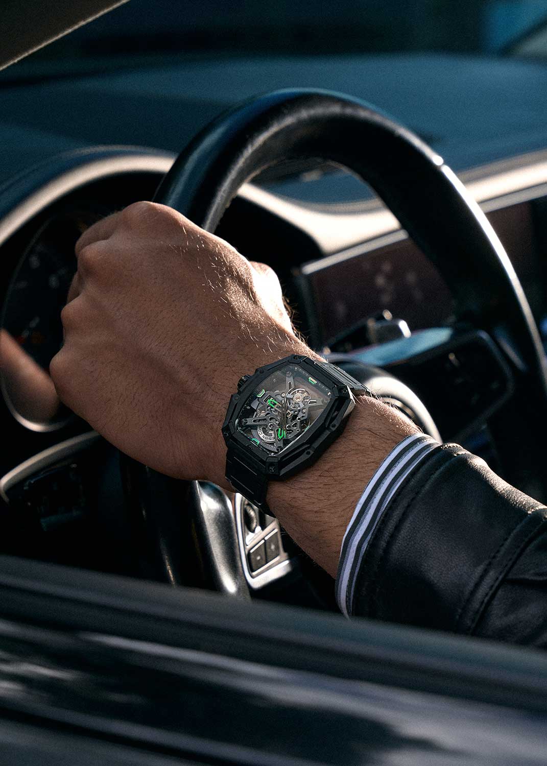 Ciga Design Z Series Hunter Skeleton Automatic - úr sem fangar augað með sínum einstaka stíl. Svart stálið í kassa og keðju myndar glæsilegt samspil við gegnsæja skeleton skífuna, þar sem má ... Sjá nánar