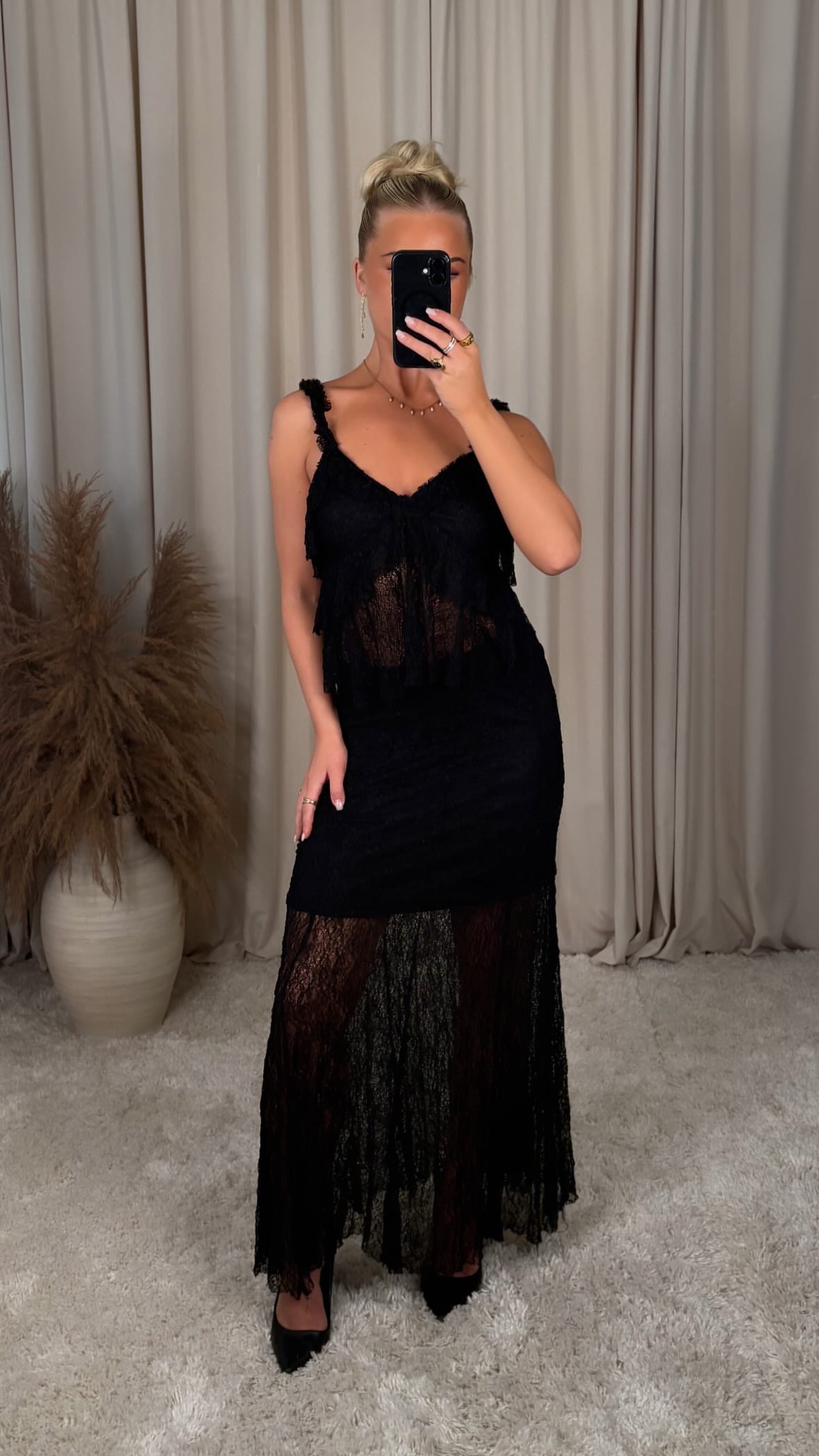 Elegant blúndupils Fallegt og kvenlegt pils úr fínlegri blúndu sem gefur létt og elegant yfirbragð. Pilsinu er hannað með teygju í mitti sem gerir það bæði þægilegt og fallegt í sniði. Neðri ... Sjá nánar