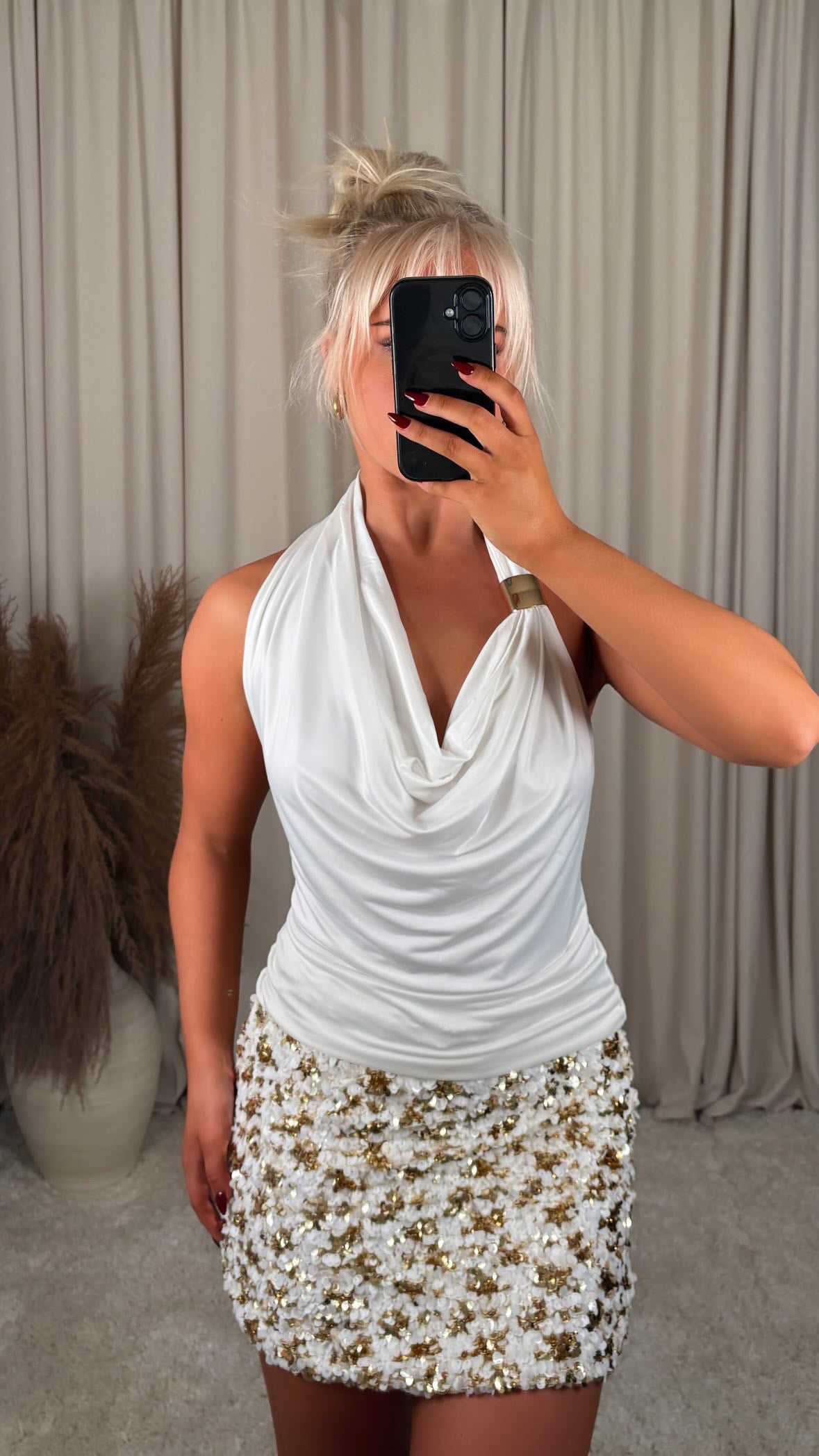 Æðislega fallegt pallíettu pils úr tvöföldu efni þannig að pallietturnar stinga ekki í gegn, það er engin teygja í efninu og er með rennilás á hliðinni modelið er 168cm og er í stærð S