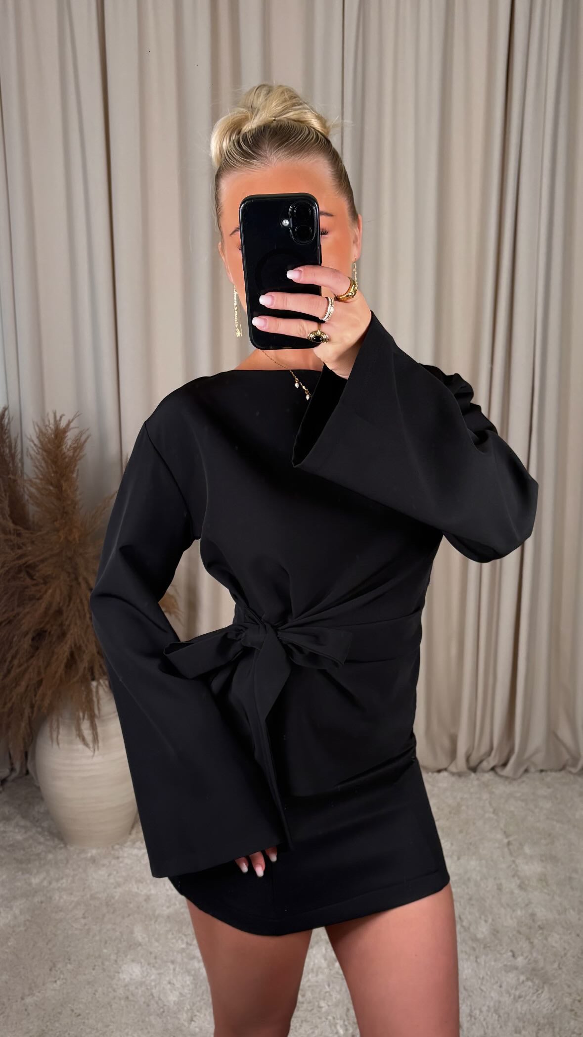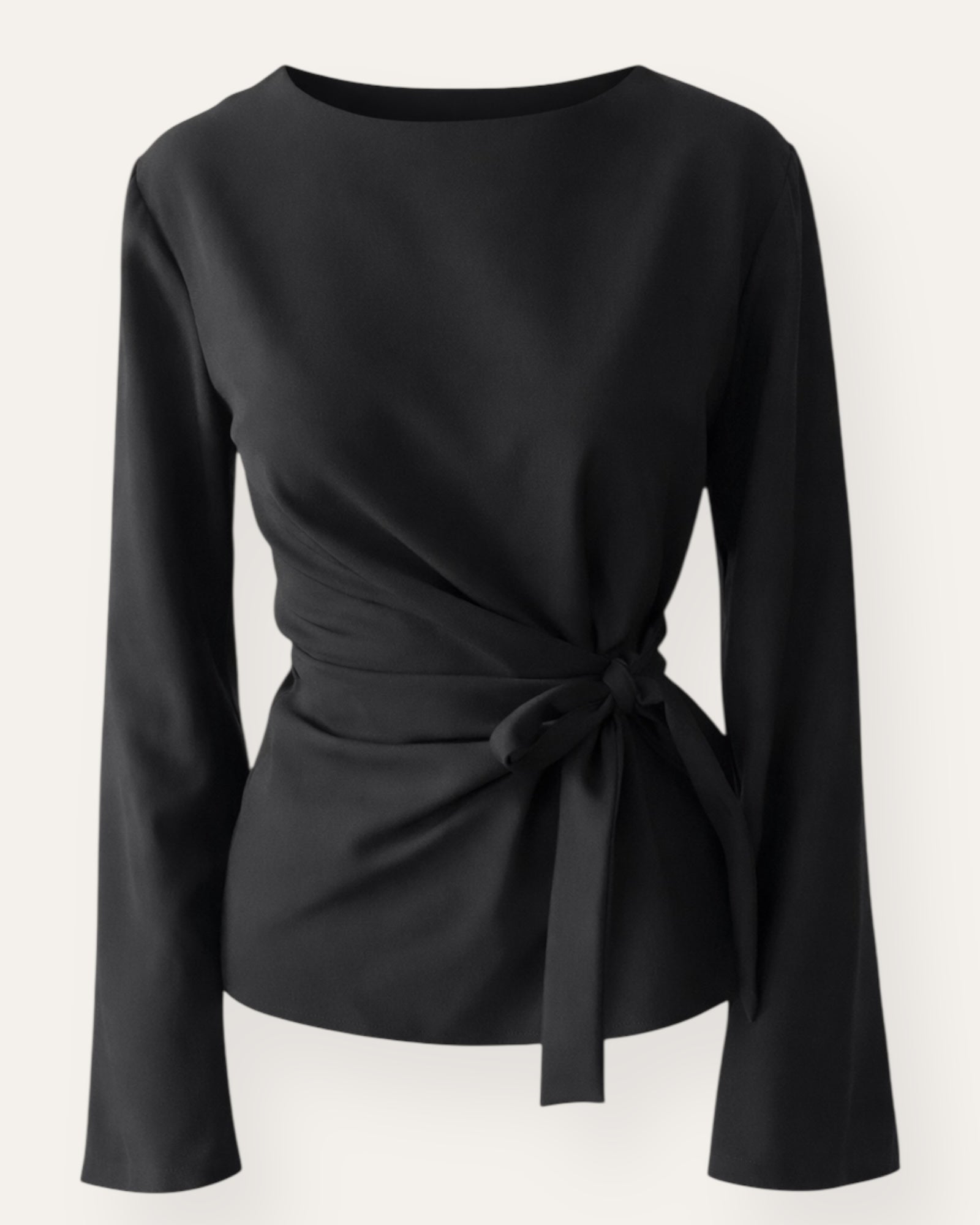 Tie Waist Long Sleeve Top Elegant toppur með fallegu sniði og bandi í mittinu sem mótar mittið. Létt og mjúkt efni sem fellur fallega og gerir toppinn bæði flottan og þægilegan. Fullkominn ... Sjá nánar