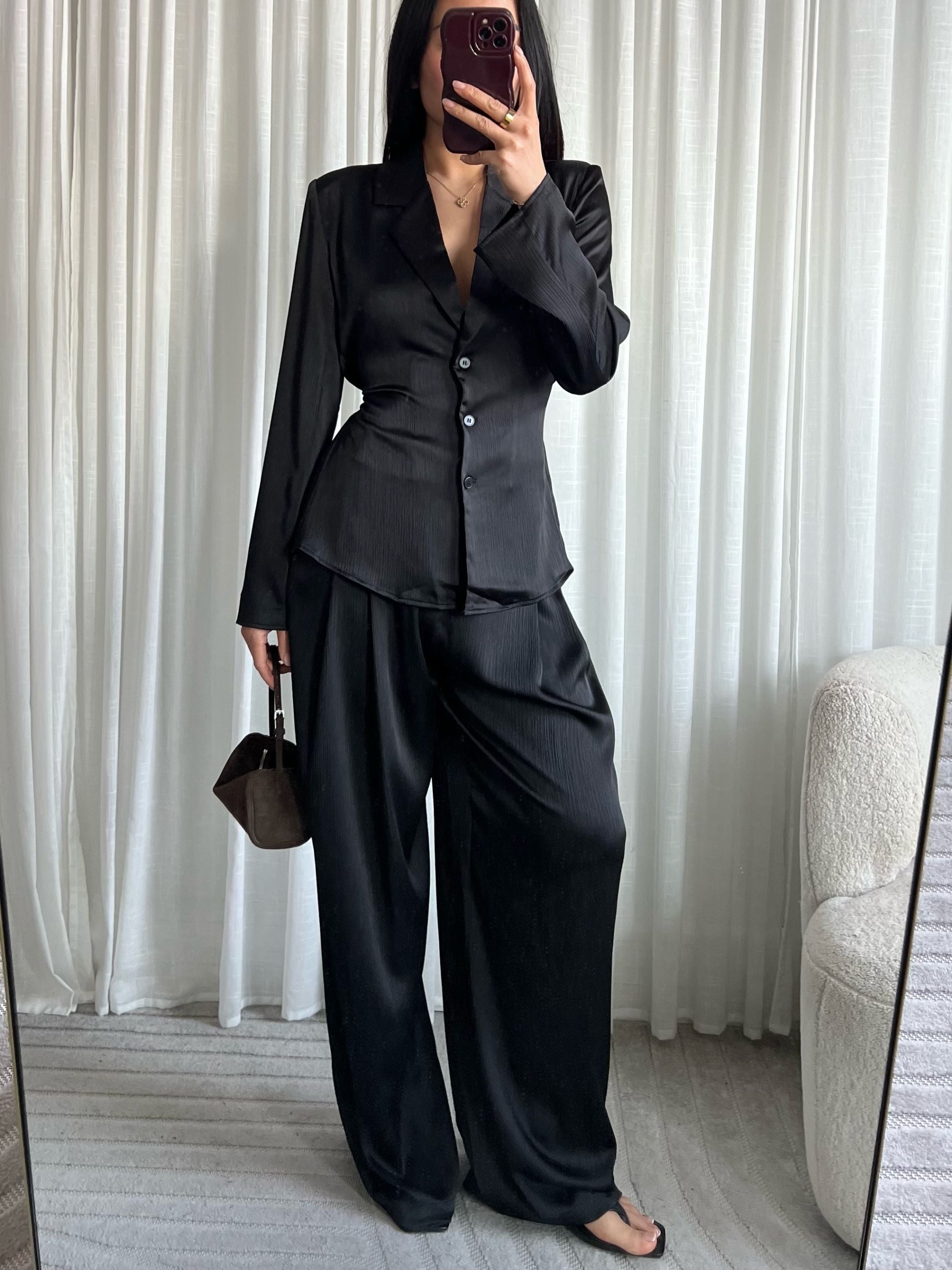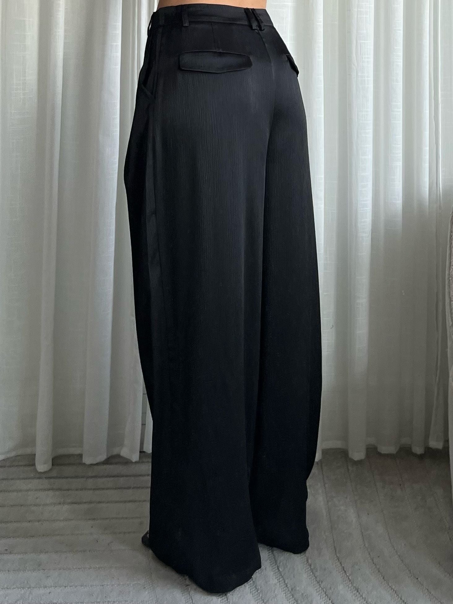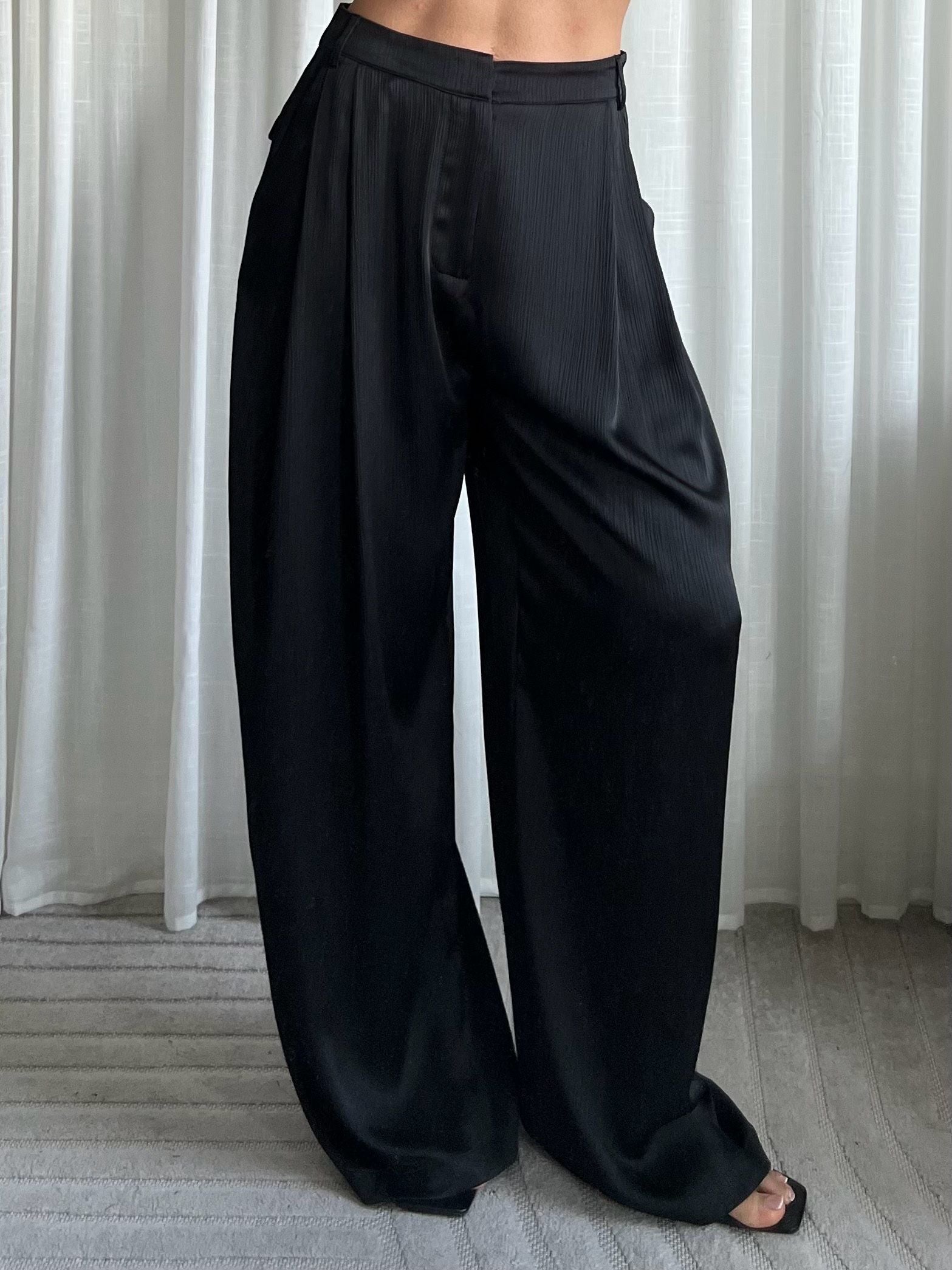 Satín dragtarbuxur – oversized midwaist Elegant og effortless satín buxur sem gefa lúxus yfirbragð með lágmarks fyrirhöfn. Buxurnar eru í víðu, oversized sniði með fallegu falli sem hreyfist ... Sjá nánar