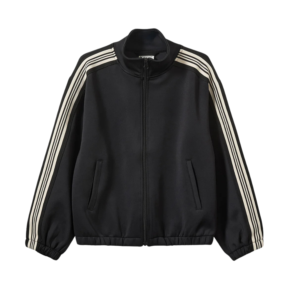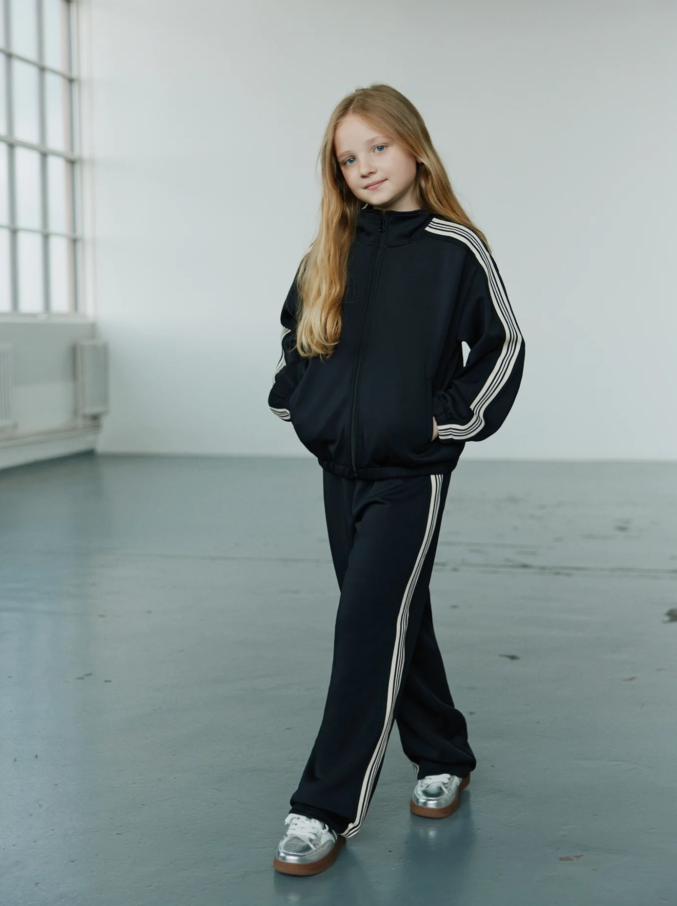 Svört, rennd peysa frá Sofie Schnoor. 90% polyester og 10% spandex.
