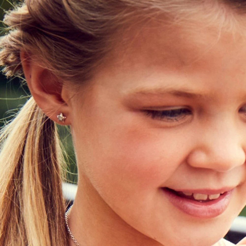 Glæsilegir barnaeyrnalokkar. Efni eyrnalokka: Silfur Steinar: Demantar Aldursbil: Börn til unglinga (þetta er einungis viðmið)