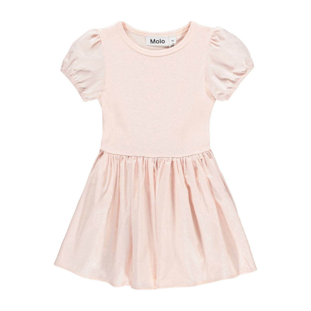 Ljós bleikur kjóll frá Molo með stuttum ermum. 100% bómull.