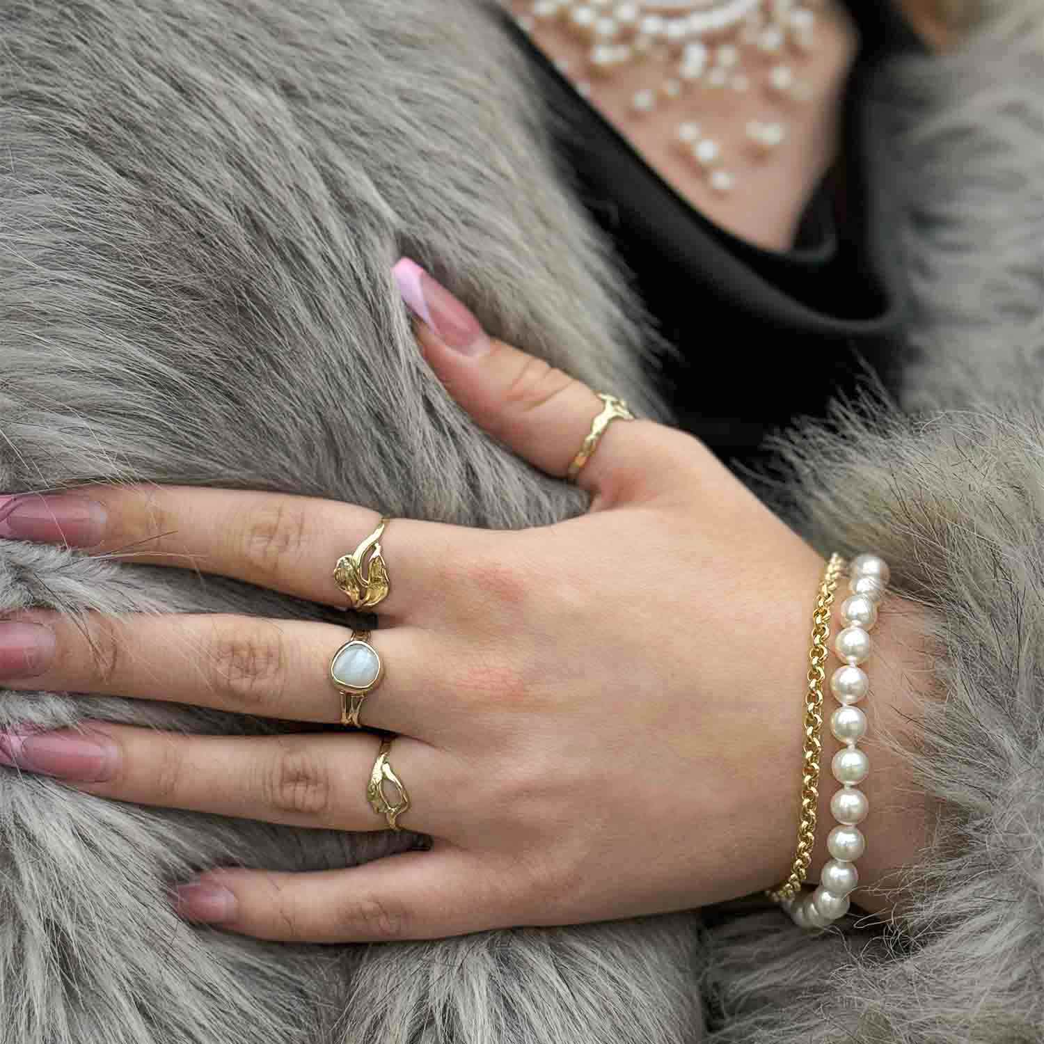 Armband er úr 14 karata gulli. Breidd armbandsins er 4 mm. Lengd armbandsins er 19 cm.