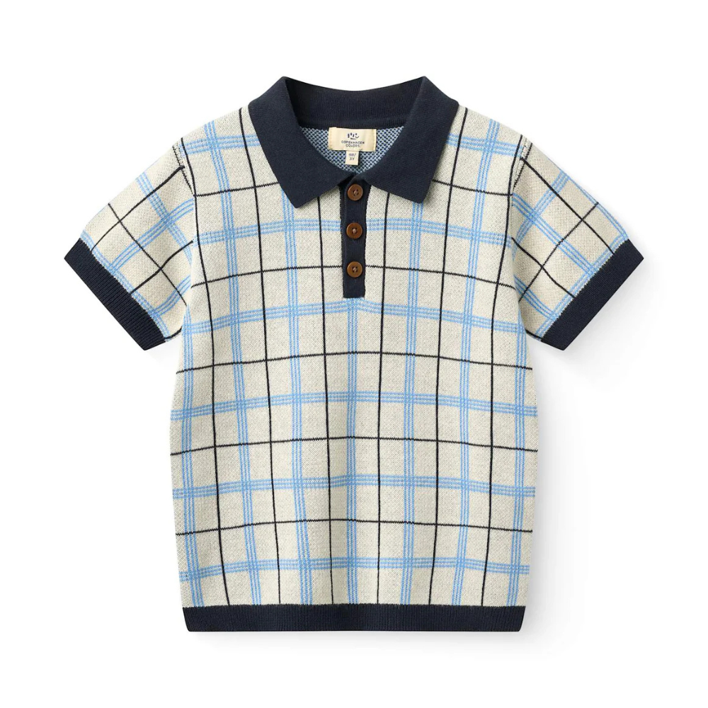 Hálf hnepptur, köflóttur kragabolur frá Copenhagen Colors. 100% bómull.