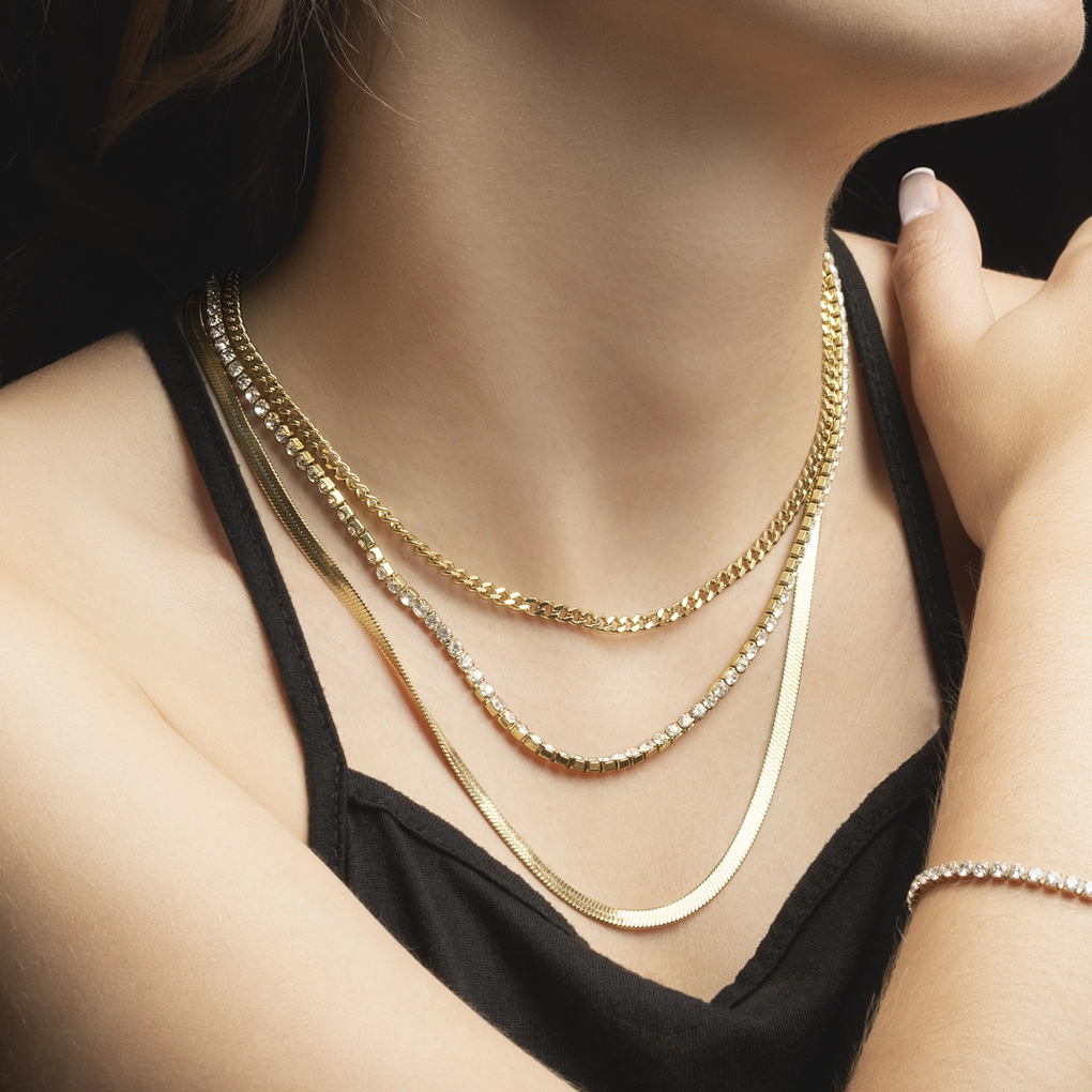 Efni mens: Gyllt stál - zirkonia Lengd keðju: 50cm