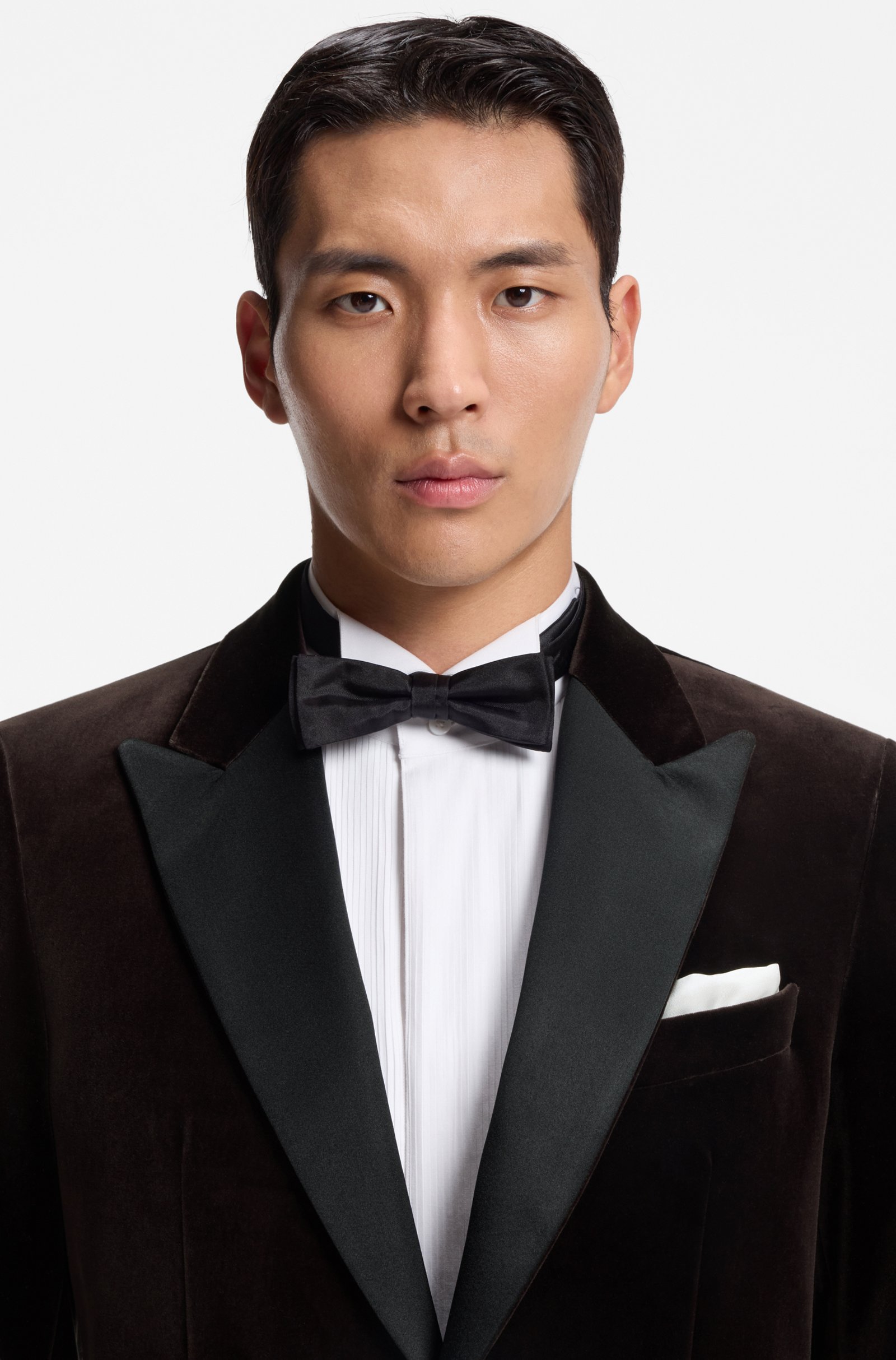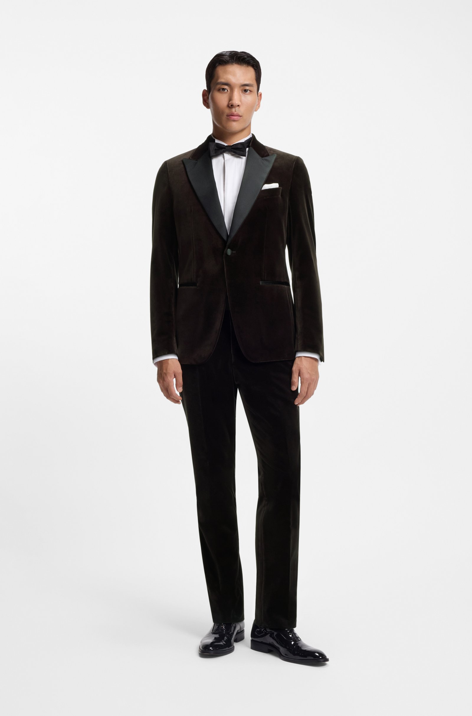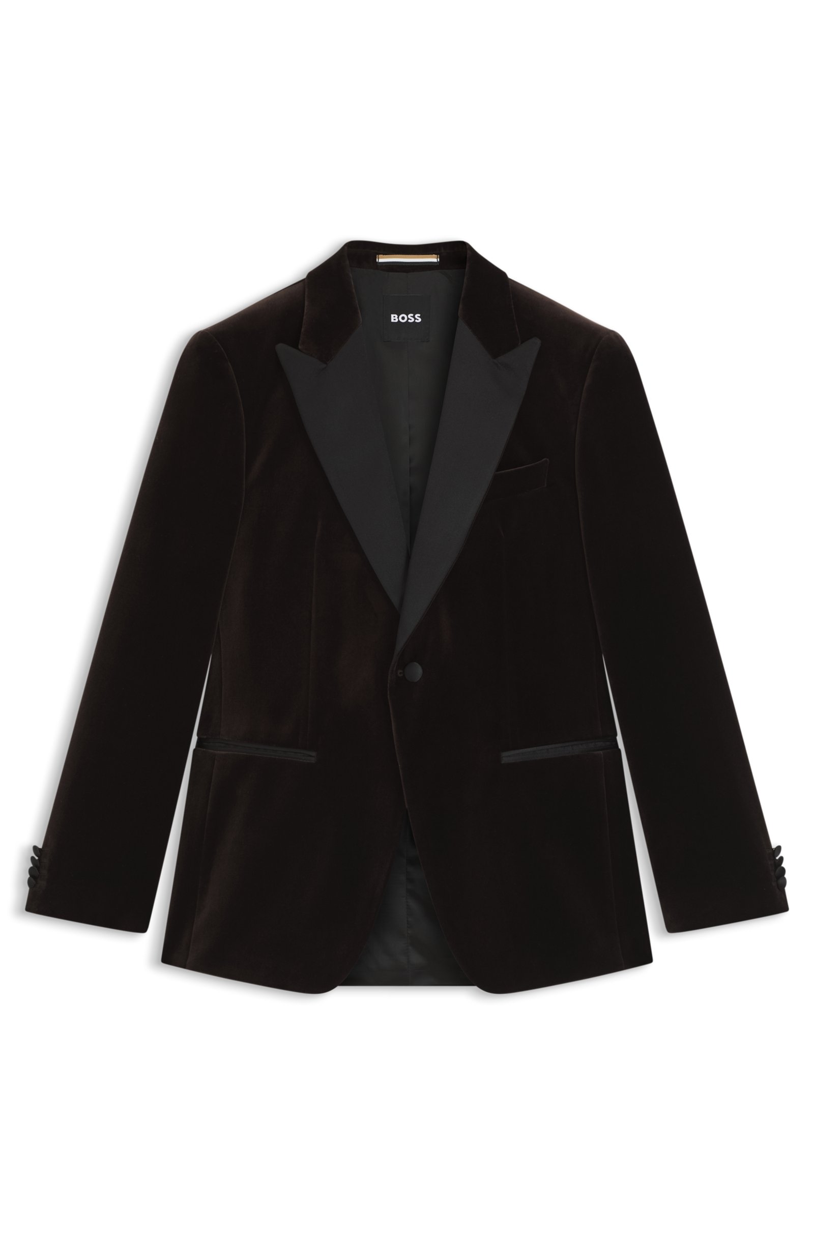 In opulent cotton velvet, this BOSS Menswear tuxedo jacket makes all the right statements at black-tie events. Silk-blend trims. Slim fit Slim fit Fully lined 100% Cotton The model wears a ... Sjá nánar