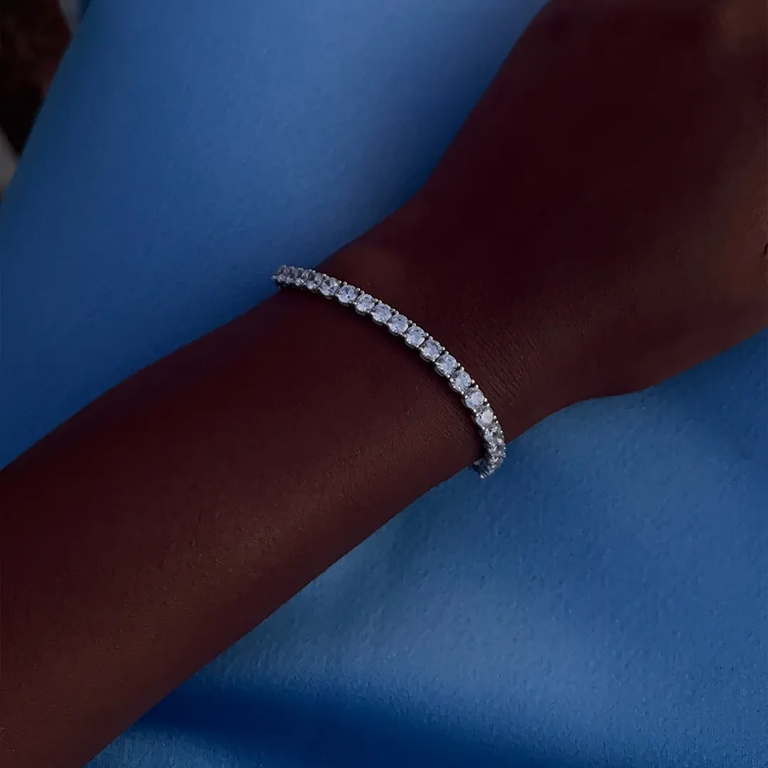 Efni armbands: Rhodiumhúðað silfur & zirkonia Þrefaldur öryggislás