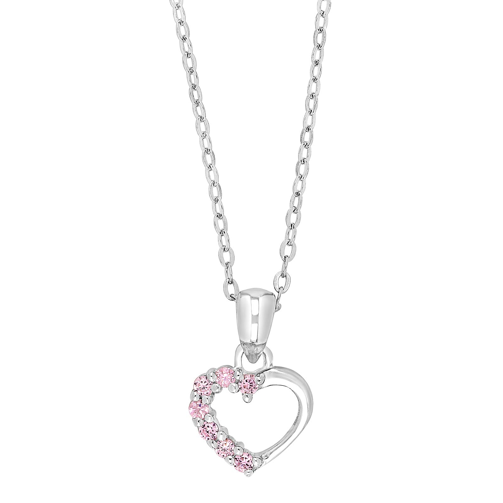 Hjarta hálsmen Vnr: 20251480900  Sætt hjarta hálsmen með zirkon steinum. Rhodiumhúðað silfur Bleikir zirkon steinar Lengd keðju: 38+5cm