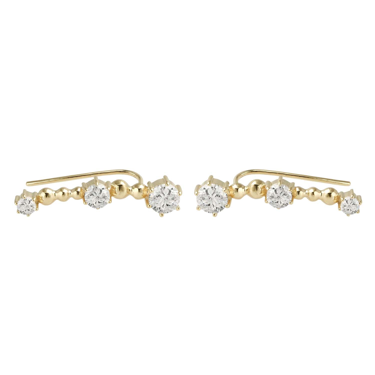 Eyrnalokkarnir eru handsmíðaðir úr 14 karata gulli með með cubic zirconia steinum.  Lokkarnir eru um 27 mm á lengd.  Hönnuður og smiður er Berglind Snorra.