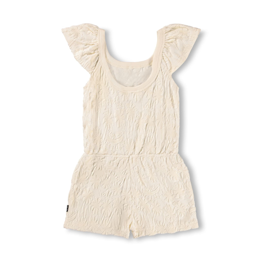 Ljós, mjúkur samfestingur frá Molo með upphleyptu mynstri. Tilvalið á ströndina eða sundlaugina. 80% bómull og 20% polyester.