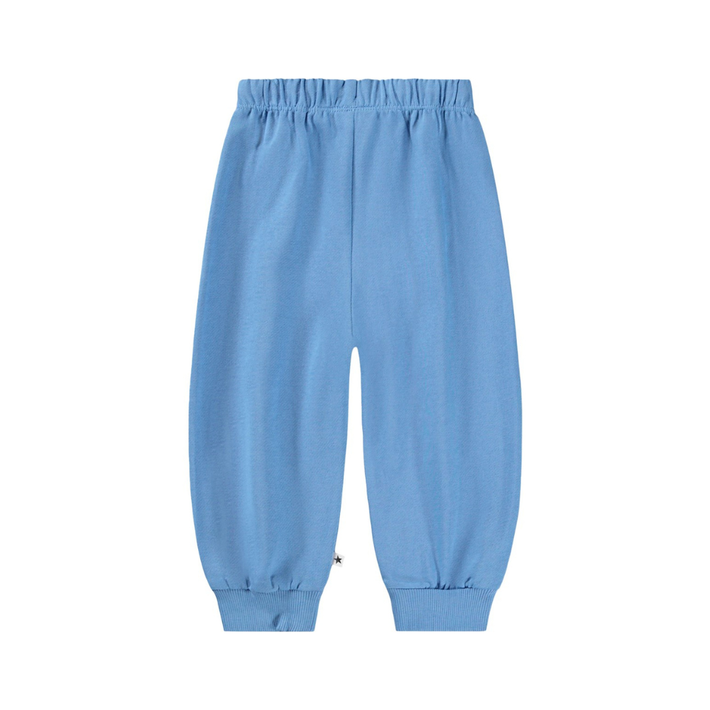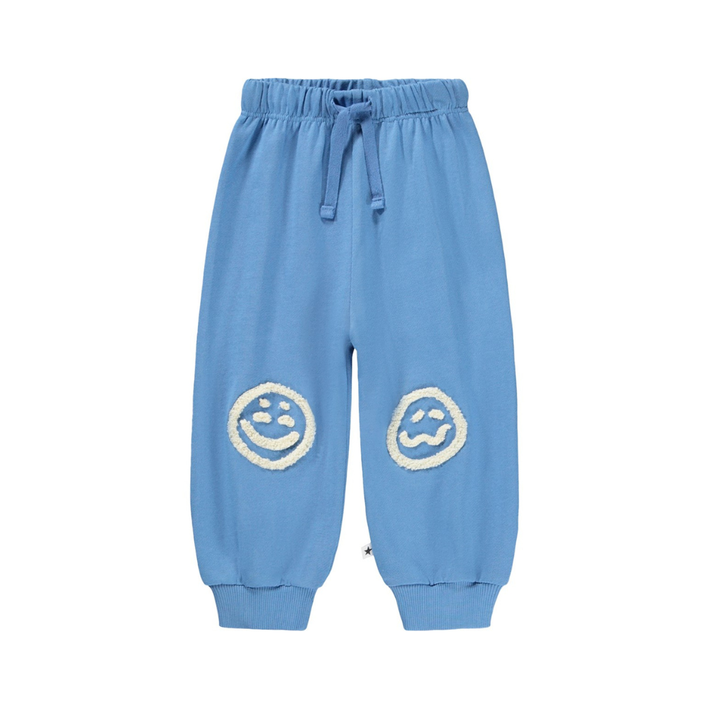 Molo joggingbuxur með brosköllum á hnjám. Buxurnar eru bundnar í mittið. 95% bómull og 5% elastane.