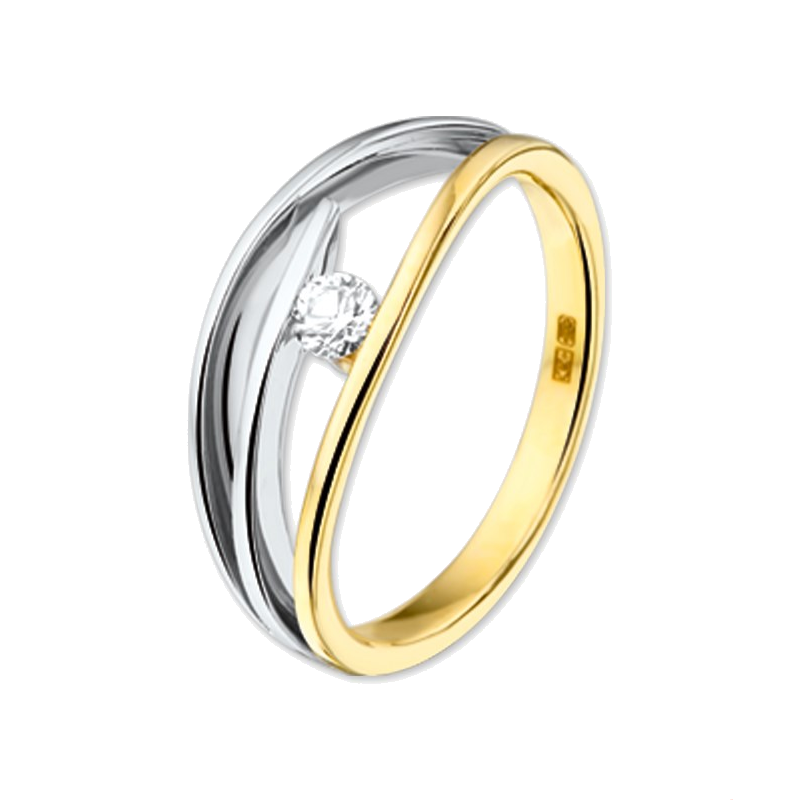 Efni hrings: 14kt gull & 14kt hvítagull Efni steins: Zirkonia