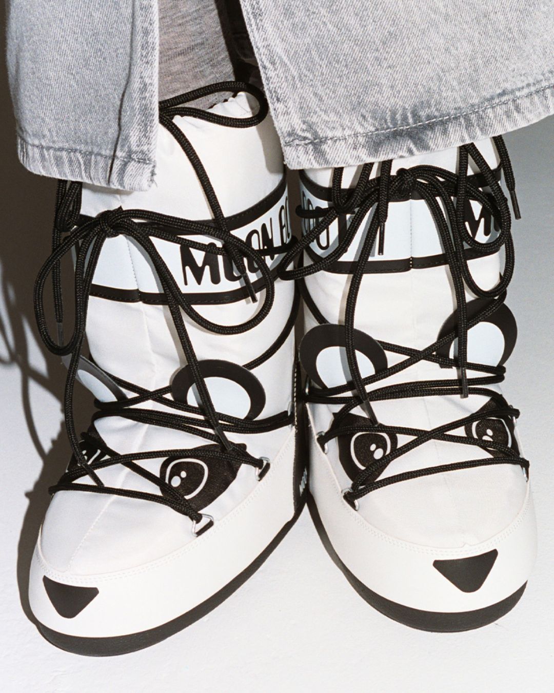 Svartir Moon Boot skór með sætu pöndu andliti. Skórnir eru innblásnir af tungl lendingunni 1969 og eru vel einangraðir með léttum millisóla og gripmiklum gúmmí sóla. Skórnir eru fóðraðir með ... Sjá nánar