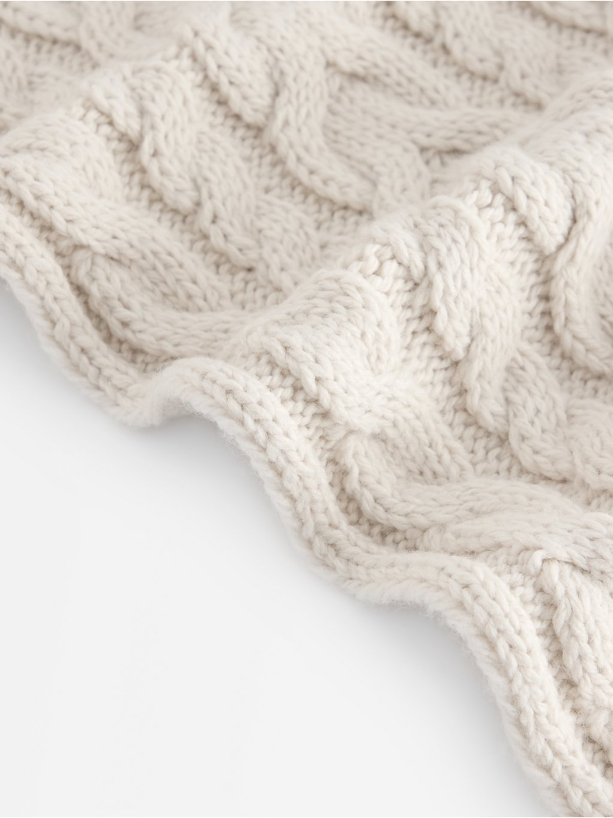 Soft and cosy cable-knit scarf. Contains 50% recycled polyester 50% pólýester 45% akríl 5% ull