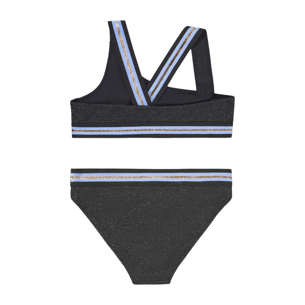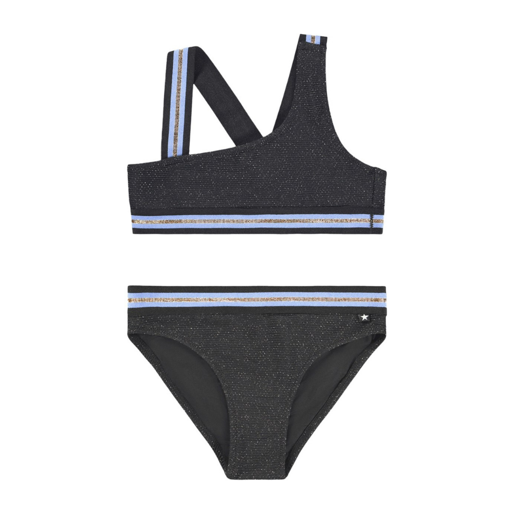 Svart glimmer bikini frá Molo með ská hlýra. 87% nylon, 7% metallic yarn og 6% elastane.