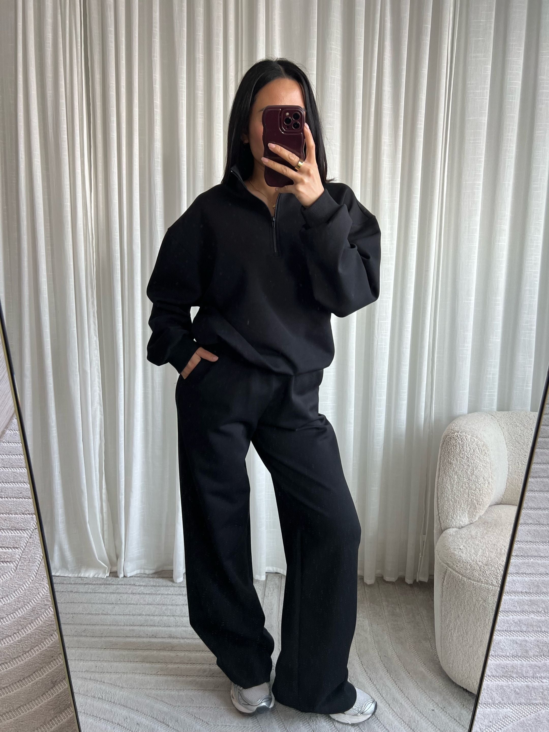 Oversized jogging buxur – long leg Þessar oversized jogging buxur eru ultimate mix af þægindum og effortless stíl. Þær eru með víðu, oversized sniði og extra löngum skálmum sem gefa modern ... Sjá nánar