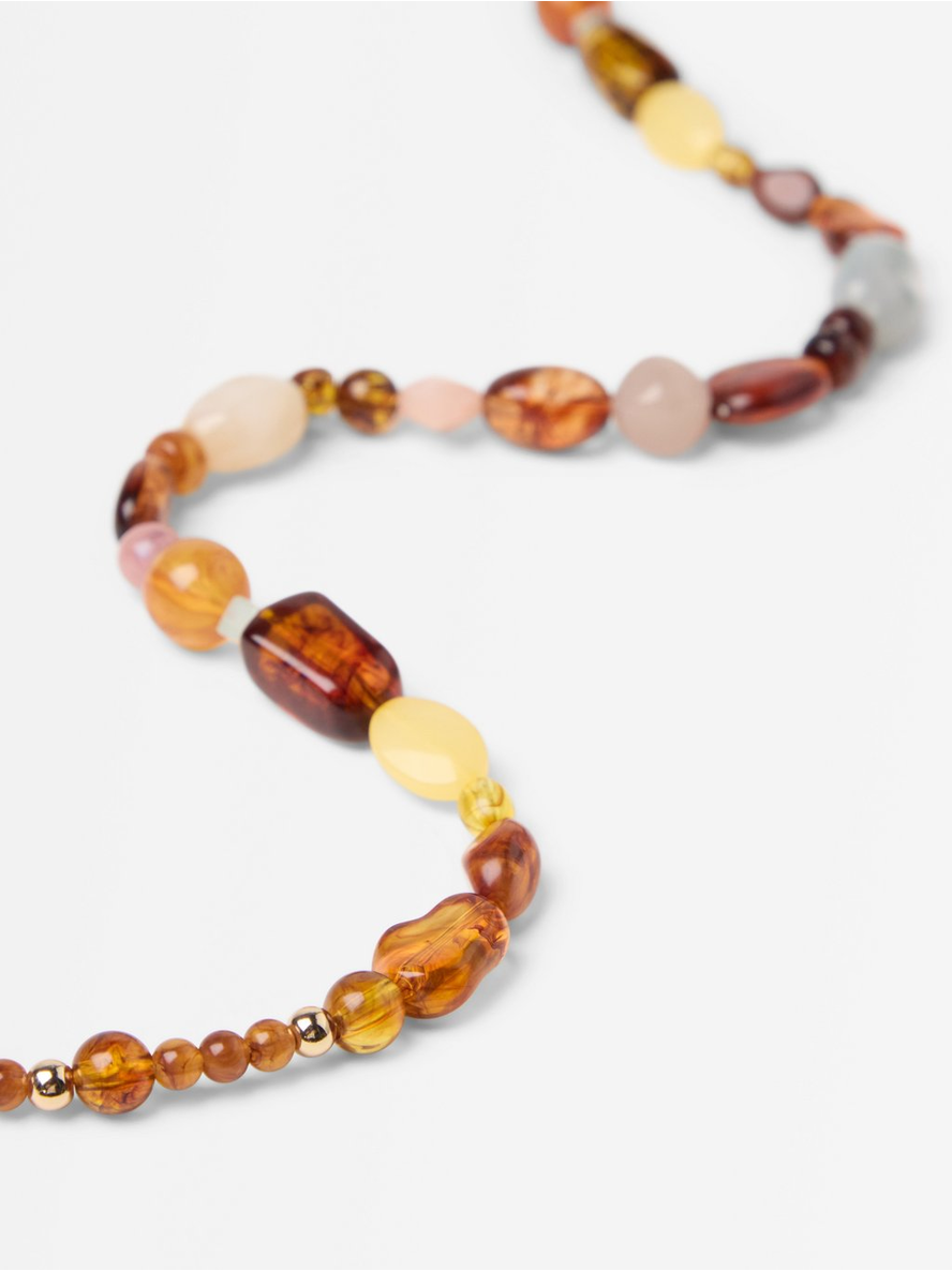 Necklace with beads in different colours. Contains 90% recycled plastic 90% plast 5% málmur 5% pólýester