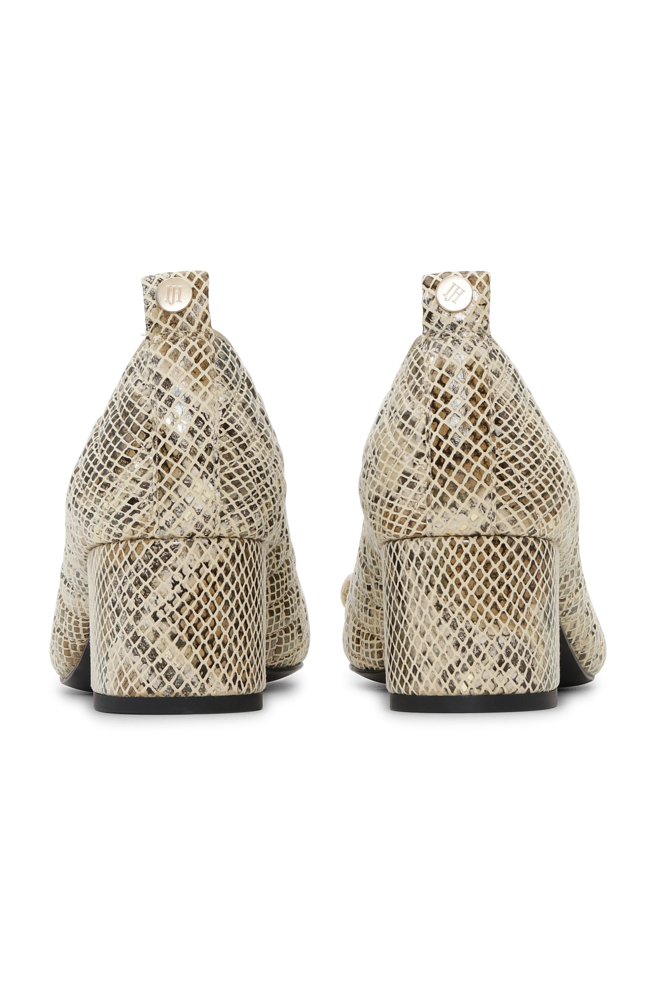 Léttir og þægilegir ballerínuskór með háum hæl. Gervileður með snákaskinns áferð.
