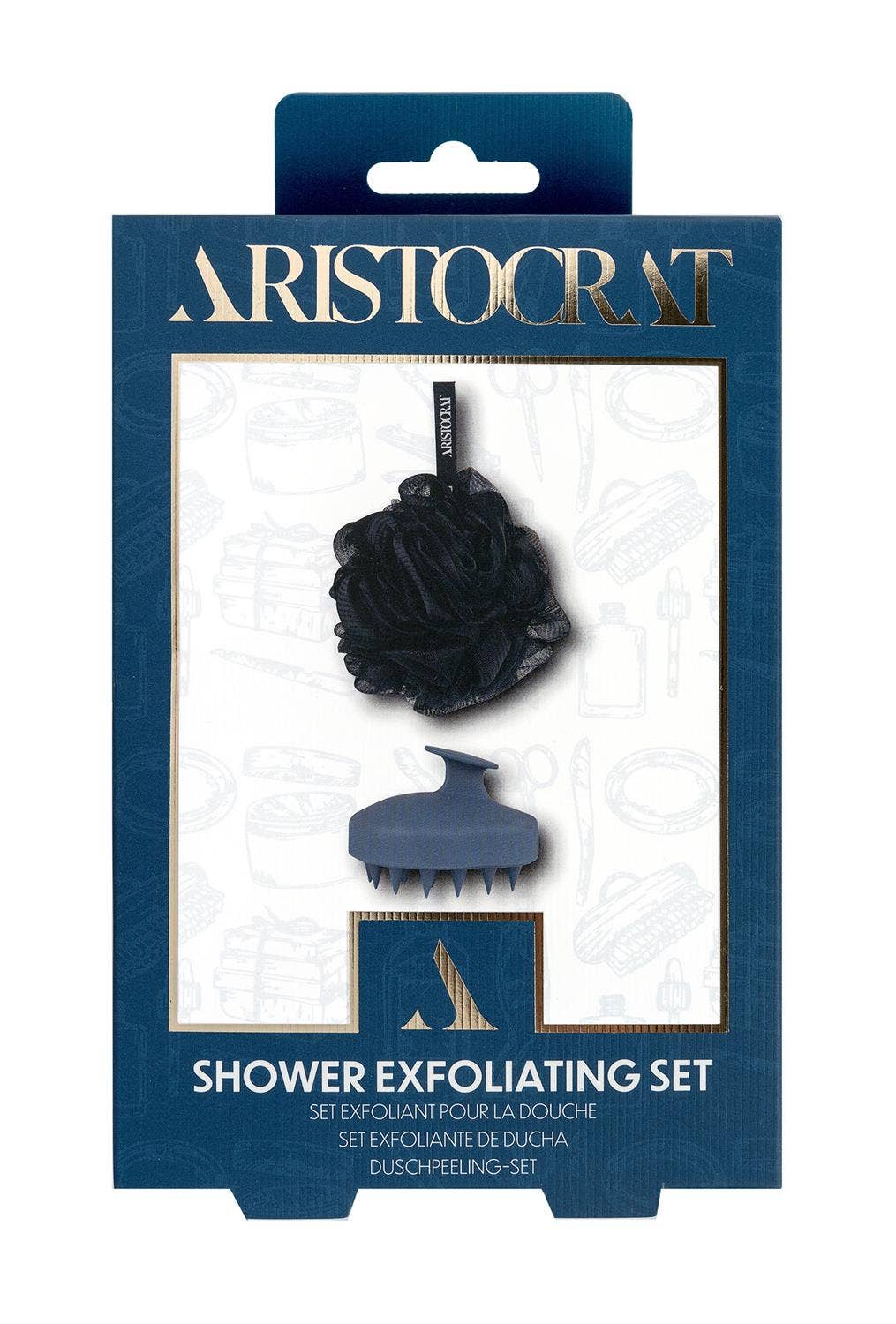 Aristocrat Shower Exfoliating Set – Þægilegt og áhrifaríkt sturtusett fyrir karla sem hreinsar húð og hár vel. Inniheldurmassage sjampó bursta úr hágæða sílikoni og sturtusvamp sem eykur froðu ... Sjá nánar