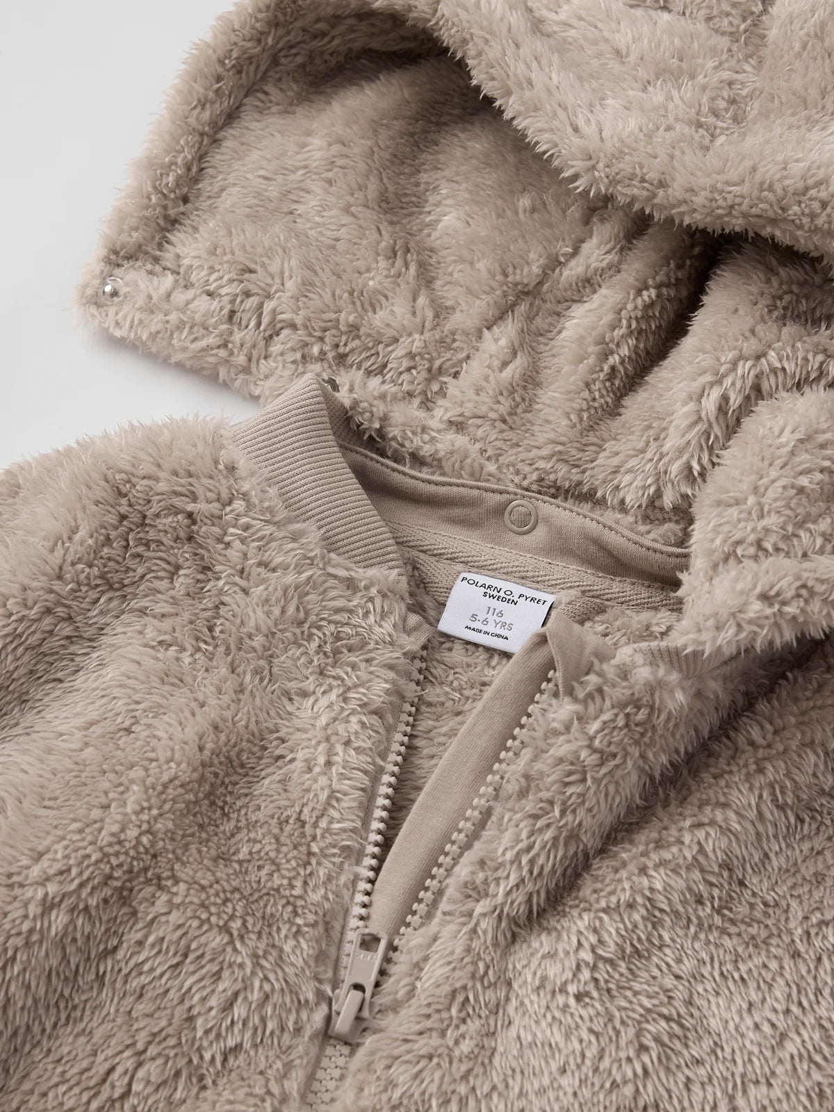 Cosy in the cold Soft and cosy hoodie with cute ears Cosy pile hoodie made from 100% recycled polyester. This hoodie features a kangaroo pocket and a detachable hood with cute little ears. ... Sjá nánar