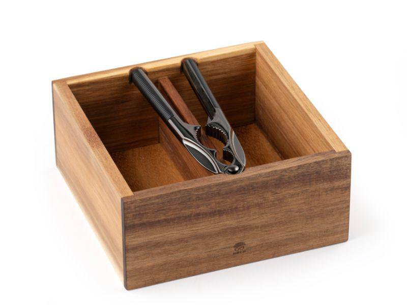 Hnetubrjótur úr járni með stöðugu gripi. Viðarkassi úr akaci við sem hentar vel undir hneturnar. Kemur í fallegum gjafakassa.