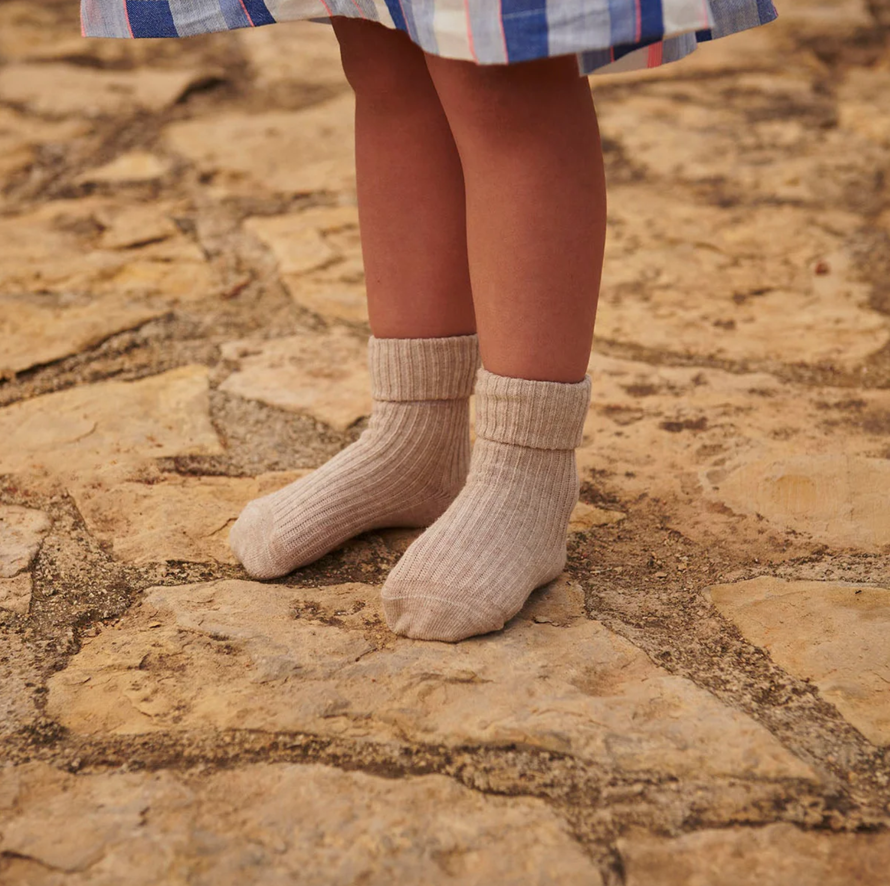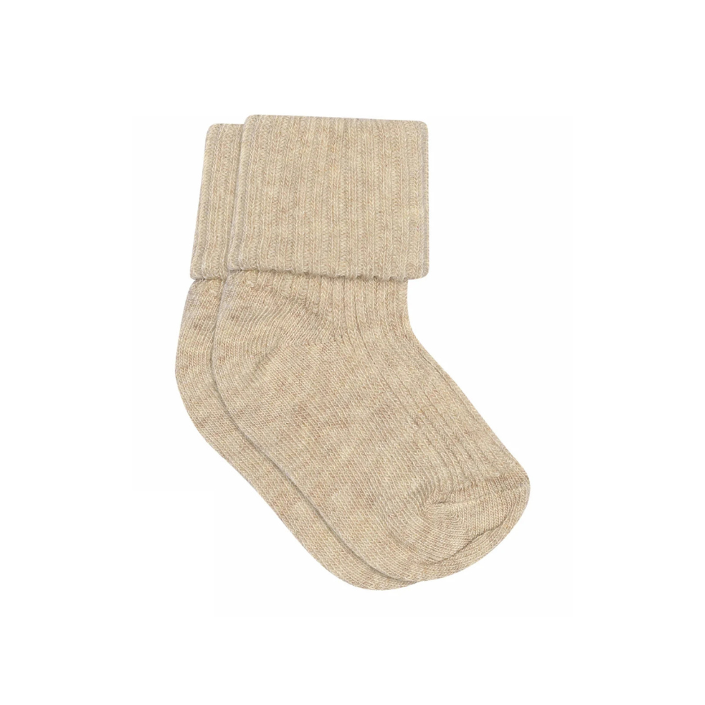Ljós brúnir ungbarnasokkar frá MP. 80% bómull, 17% polyamide og 3% elastane.