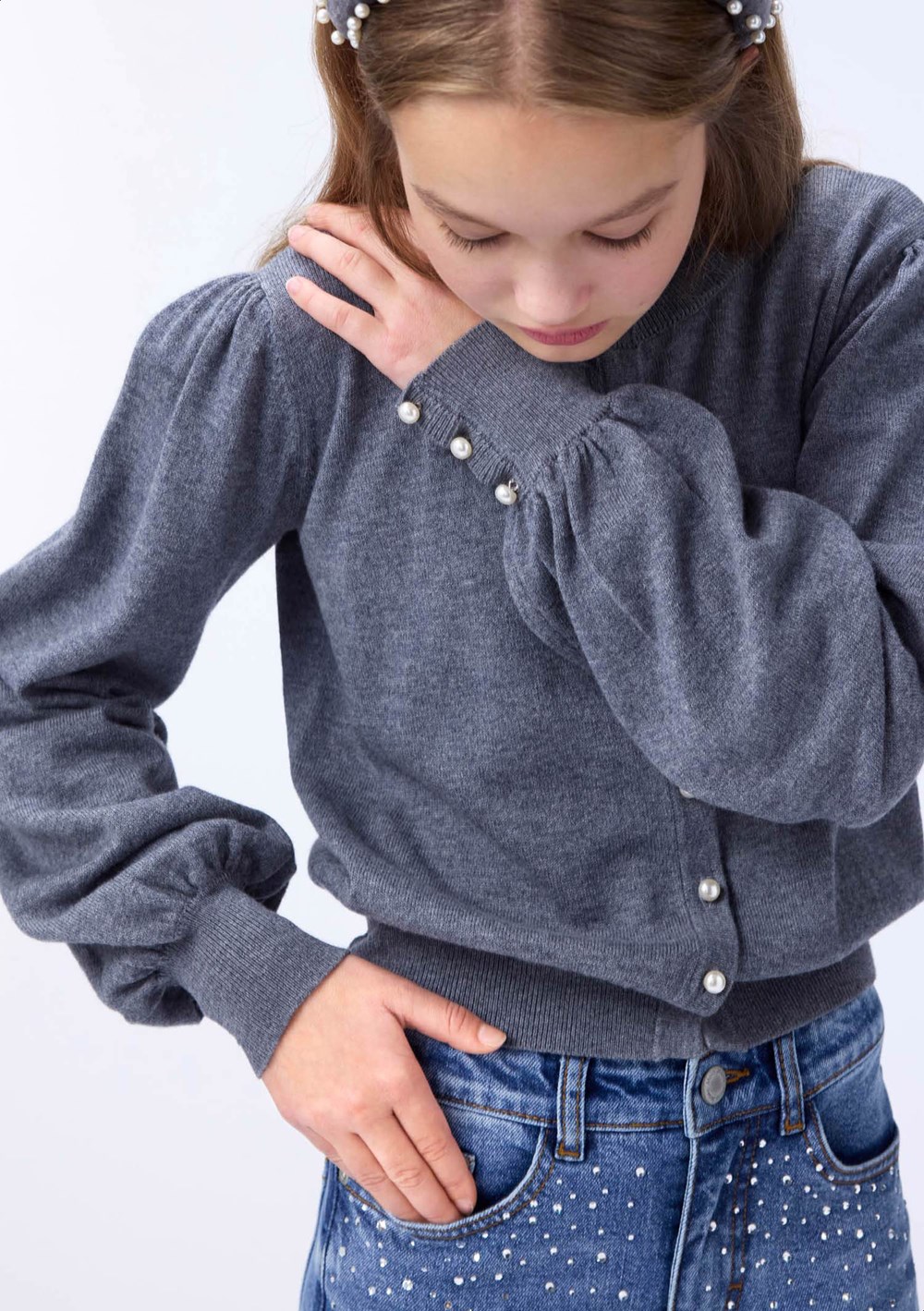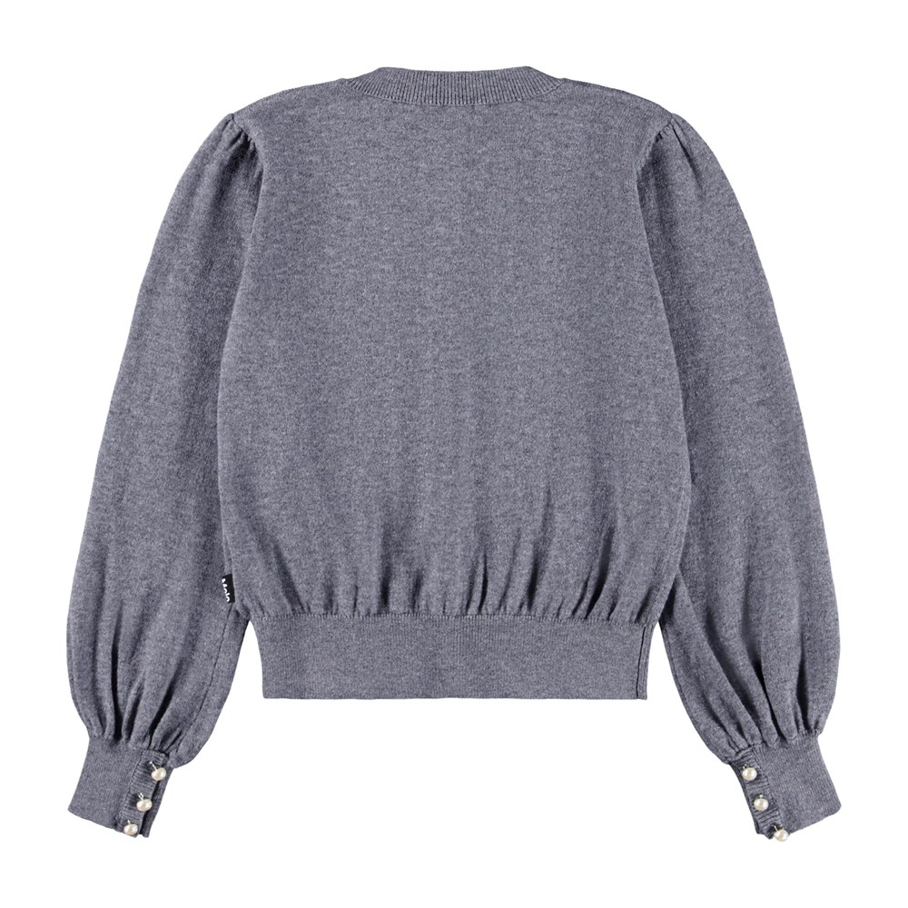 Grá, hneppt peysa frá Molo.