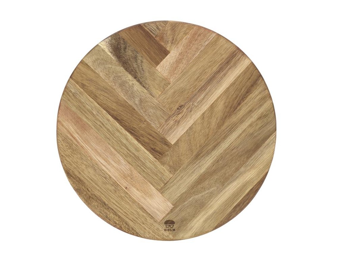 Fallegt hringlaga bretti úr FSC vottuðum akasíuvið skreytt glæsilegu fiskibeinamynstri sem dregur fram náttúrulega fegurð viðarins. Fullkomið til framreiðslu á pizzu, osta, smáréttum, ... Sjá nánar