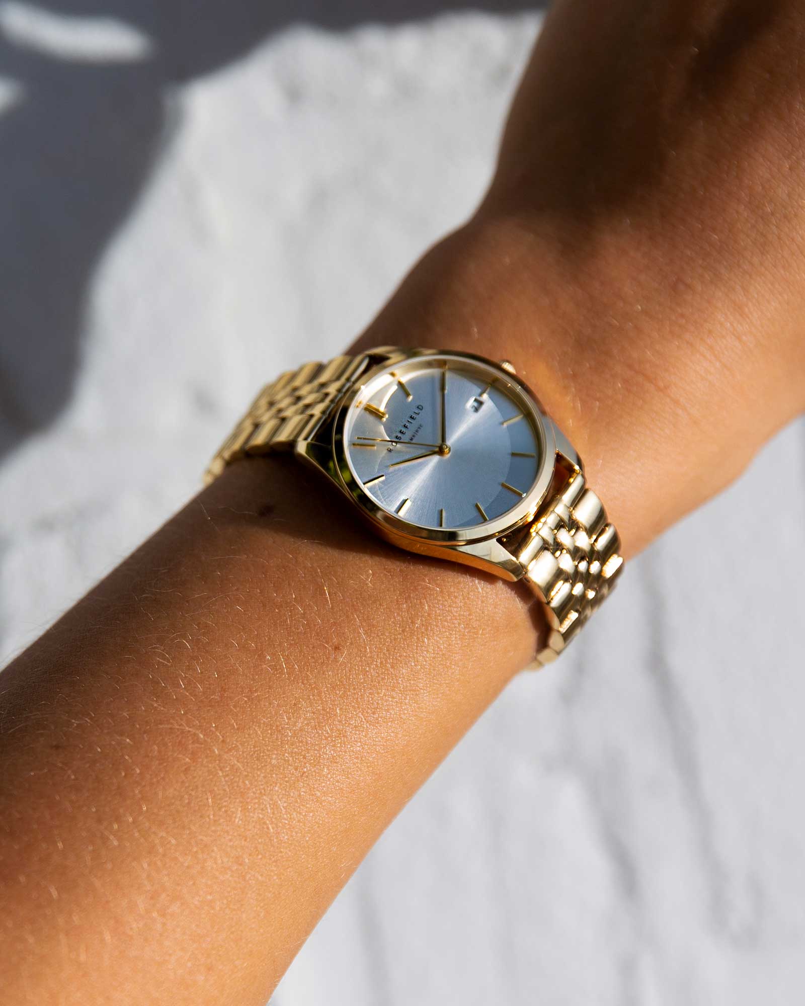 Rosefield - Ace Gold Vörunr : ACSG-A03 Fallegt dömuúr frá Rosefield. Gangverk: Rafhlaða/Quartz Stærð: 33 mm Úrkassi: Gyllt messing Keðja/ól: Gyllt stál keðja Skífa: Hvít Gler: Hert gler ... Sjá nánar
