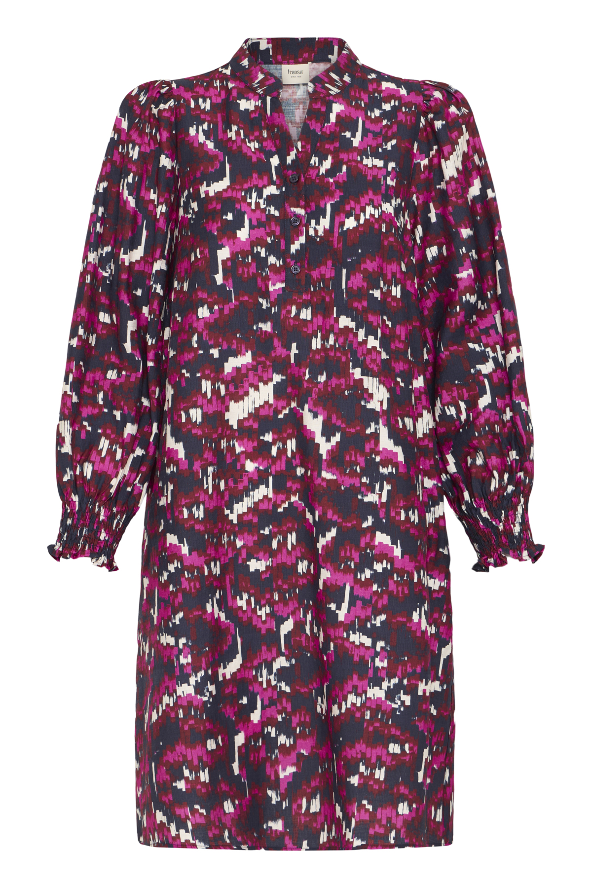 Fallega mynstraður kjóll með vösum frá FRANSA. Stærðirnar eru nokkuð hefðbundnar hjá FRANSA og er mælt með því að rétt stærð sé tekin, ekki minni eða stærri.